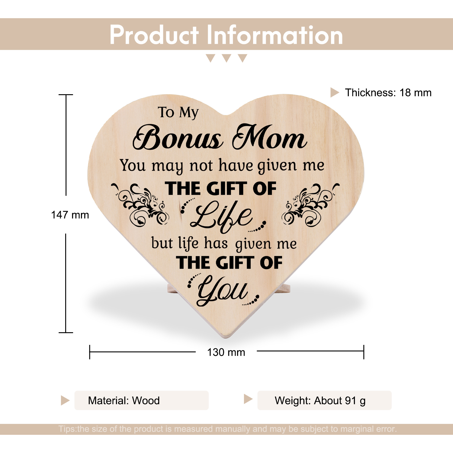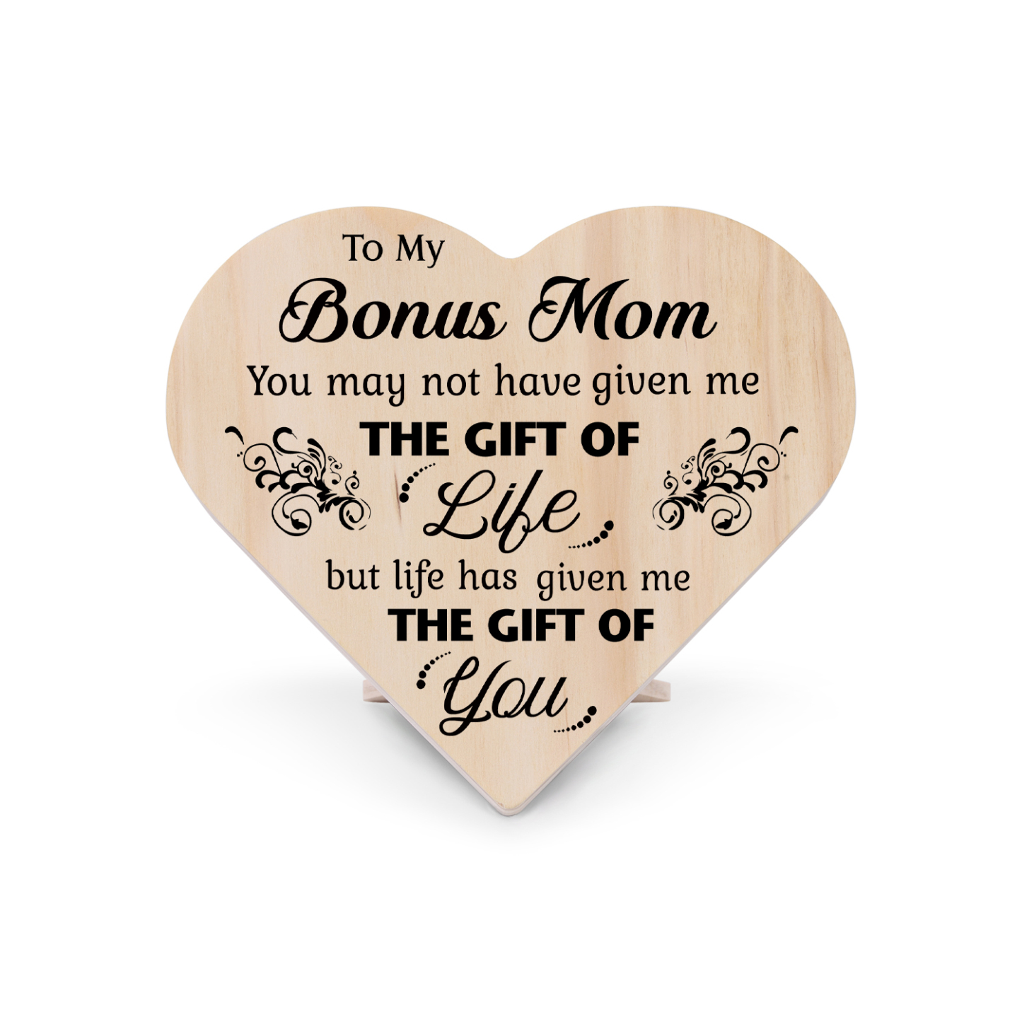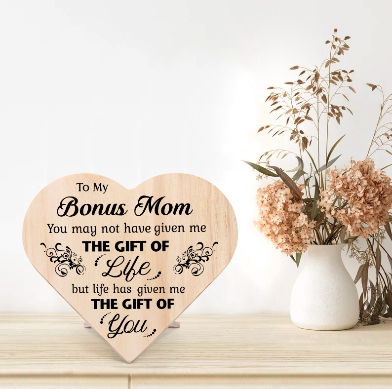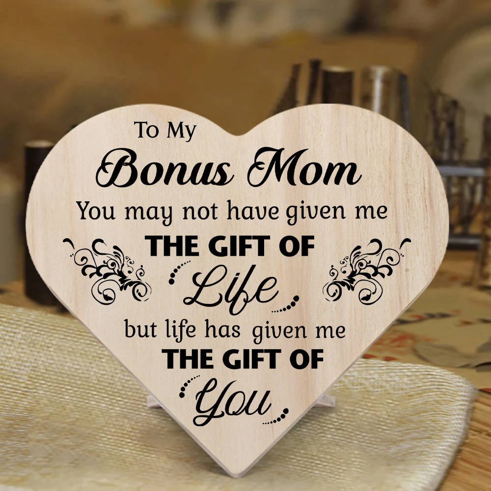 To My Bonus Mom Life Has Given Me The Gift Of You Wooden Heart Keepsake Desktop Ornament