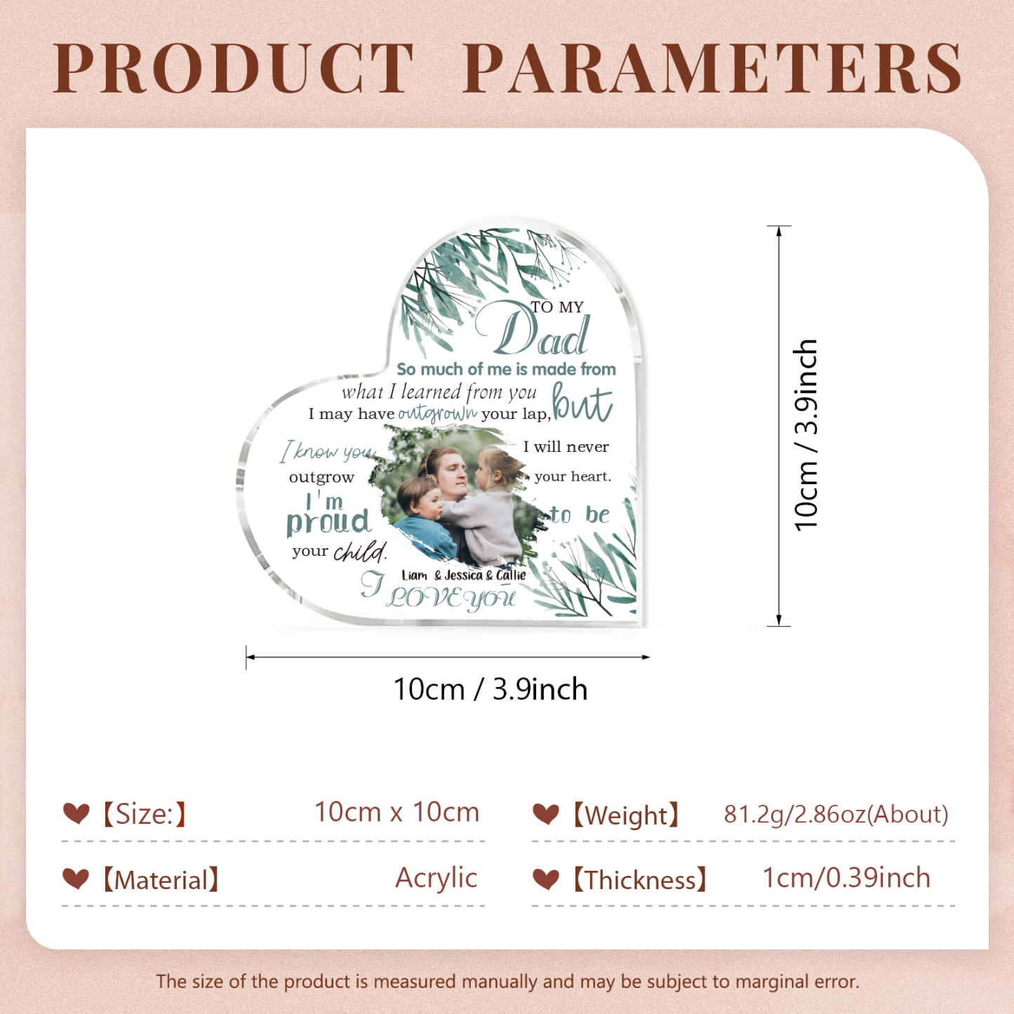 To My Dad Personalized Acrylic Heart Keepsake Custom Photo Sign Plaque