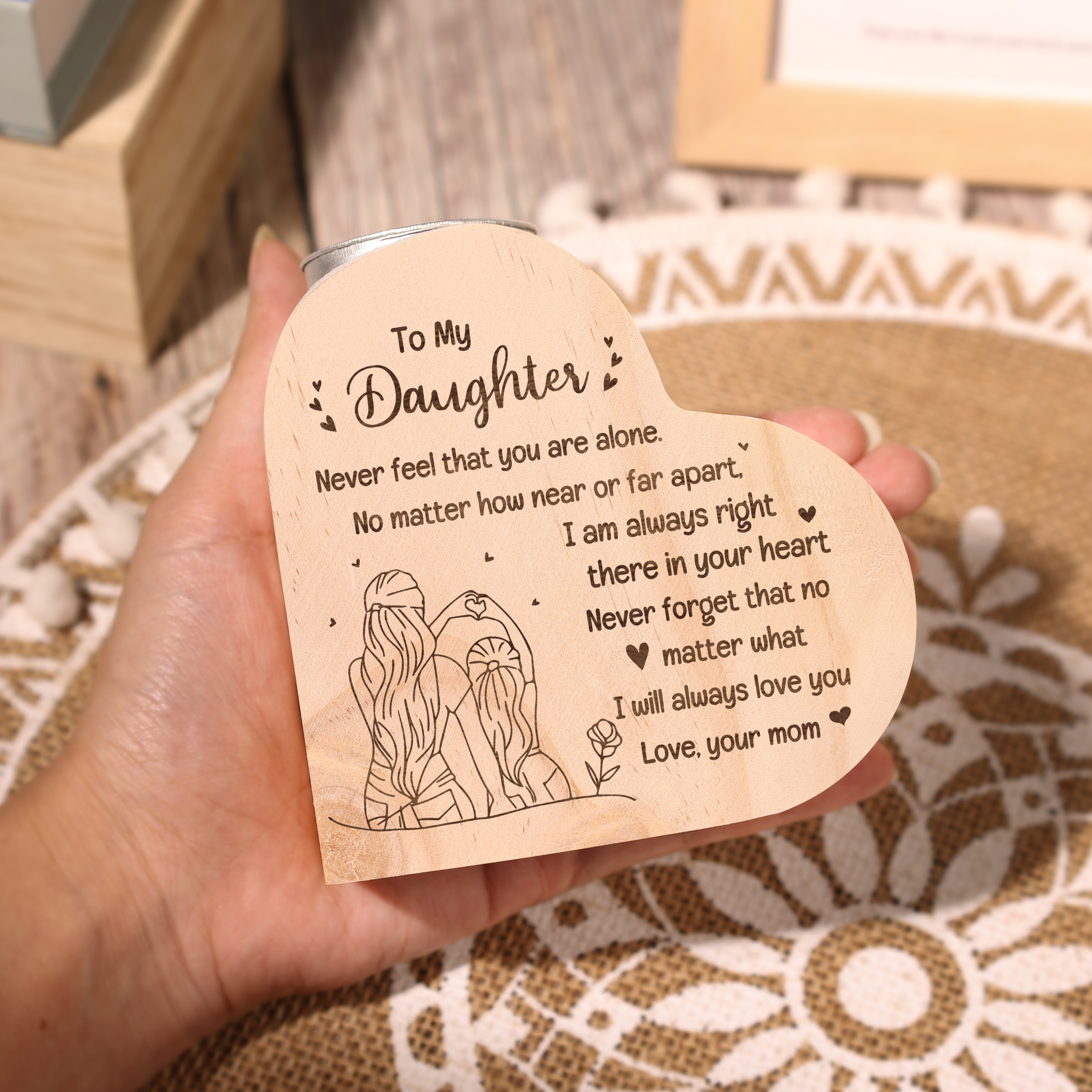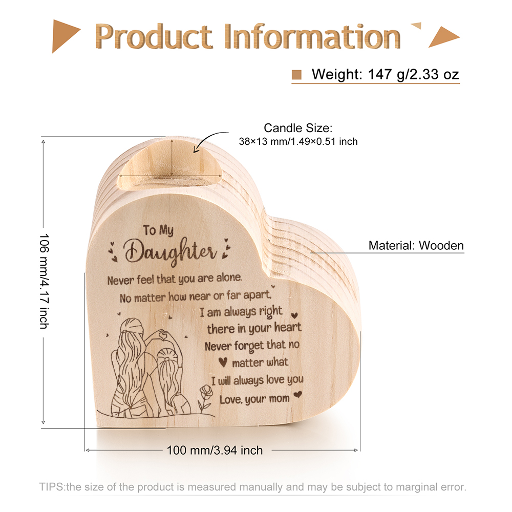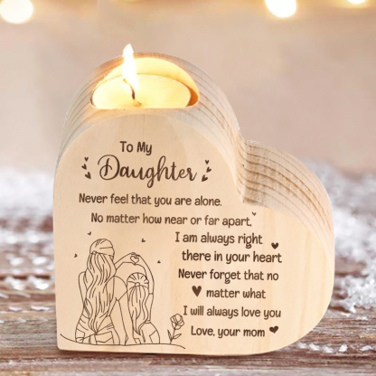 To My Daughter Heart Candle Holder "Never feel that you are alone" Wooden Candlestick