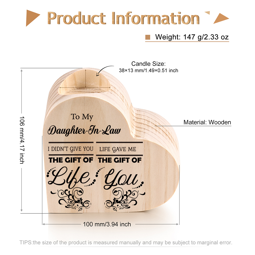 To My Daughter-In-Law Heart Candle Holder "Life Gave Me The Gift of You" Wooden Candlestick