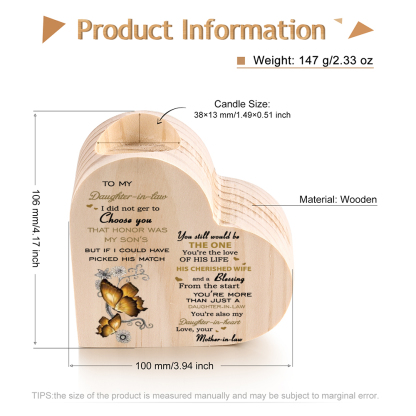 To My Daughter-in-law-Wooden Heart Candle Holder Butterfly Candlesticks "You still would be the one"