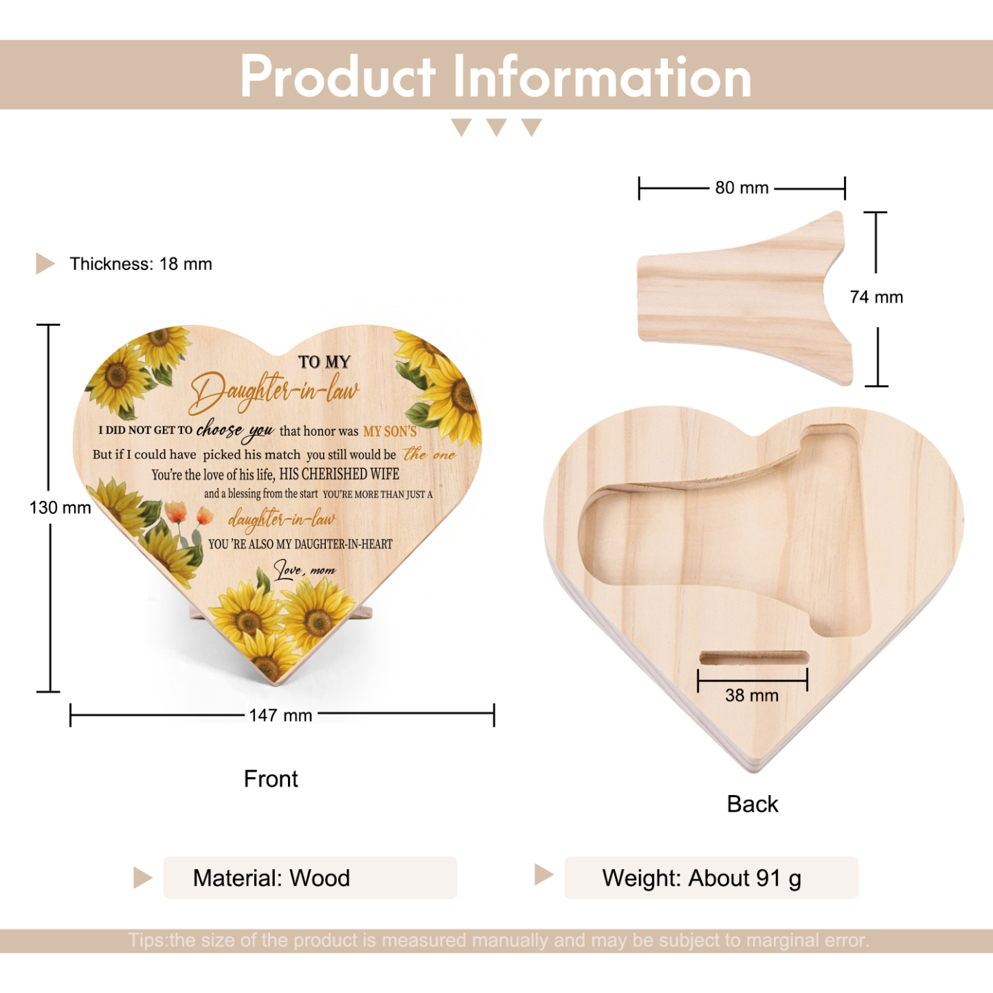 💕 Whether it's for a birthday, anniversary, or just because, this wooden heart is sure to bring warmth and joy to their heart. This wooden heart desktop ornament symbolizes the love and warmth that we share with our loved ones. It serves as a reminder of the cherished memories we've created together and the unbreakable bond we share.