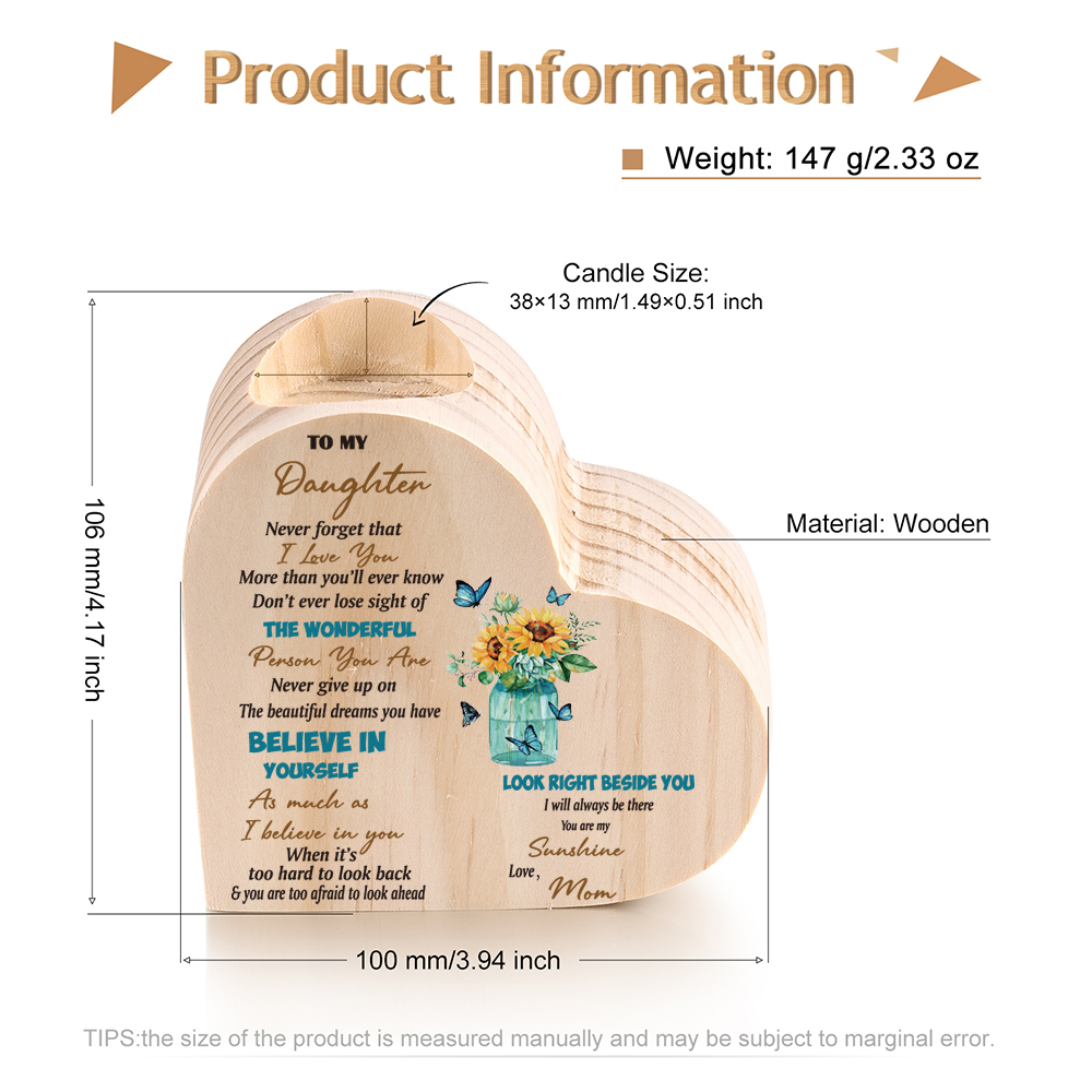 To My Daughter-Wooden Heart Candle Holder Sunflowers Candlesticks "I will always be there"