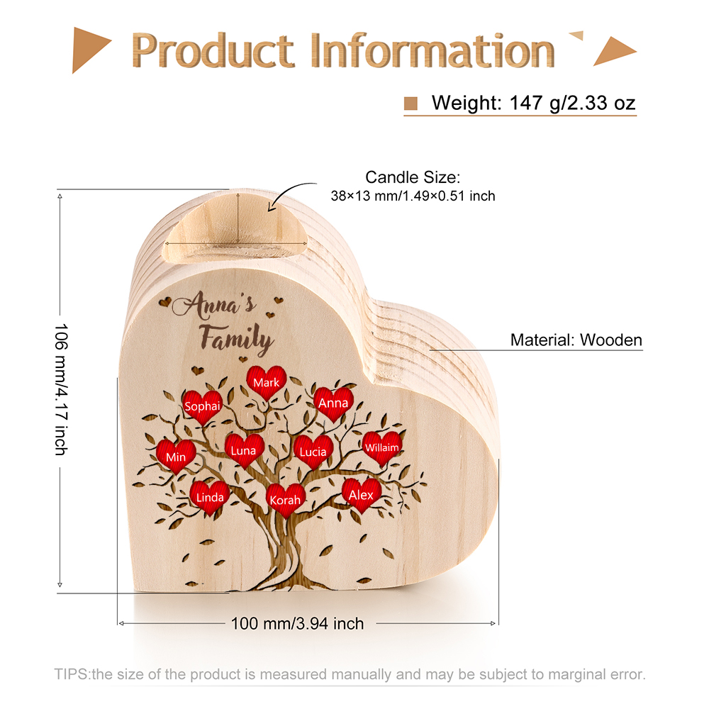 To My Family Wooden Heart Candle Holder Custom 10 Names Family Tree Candlesticks