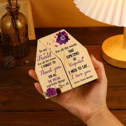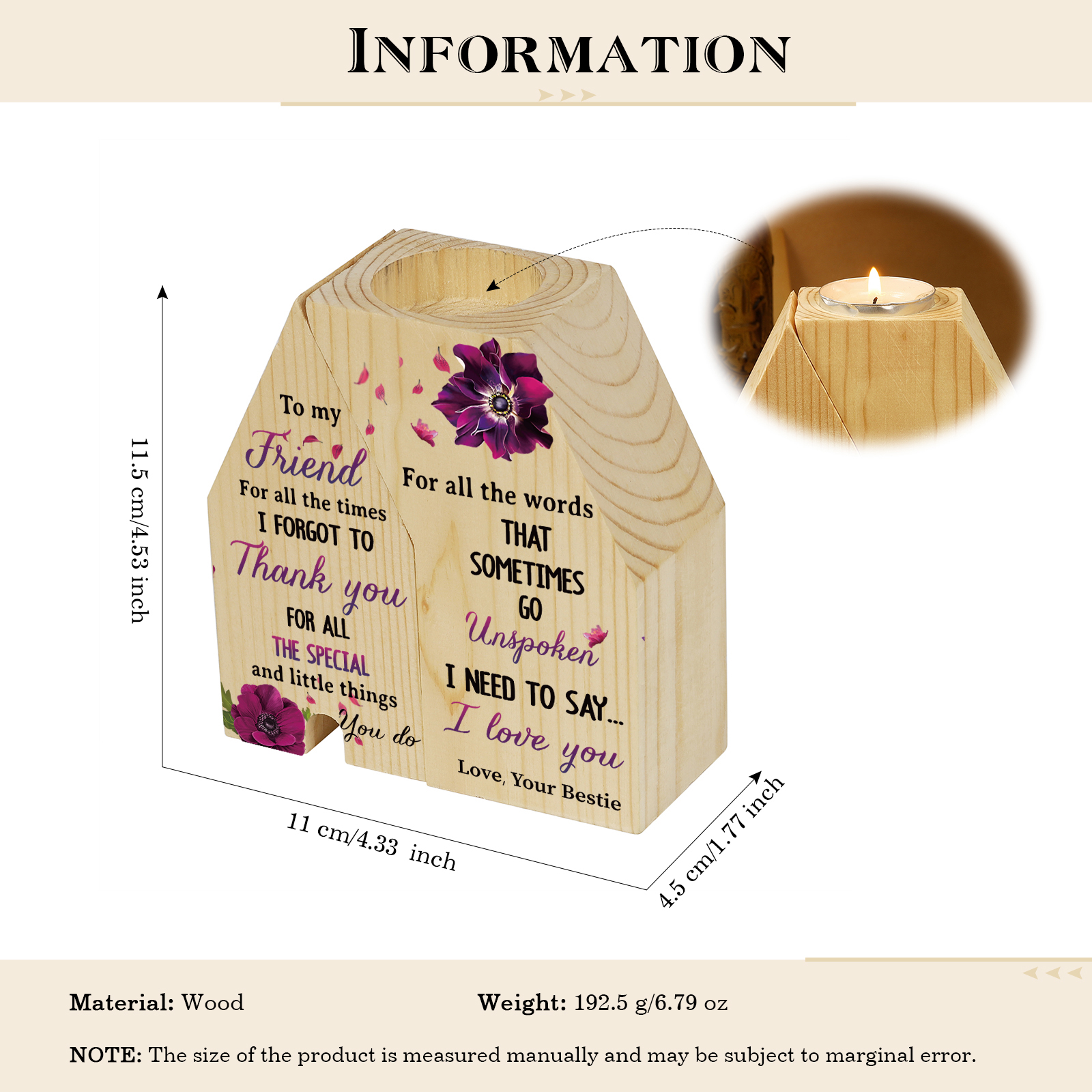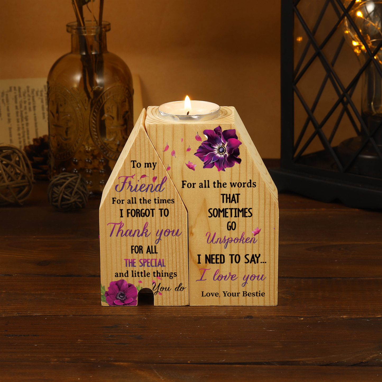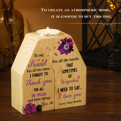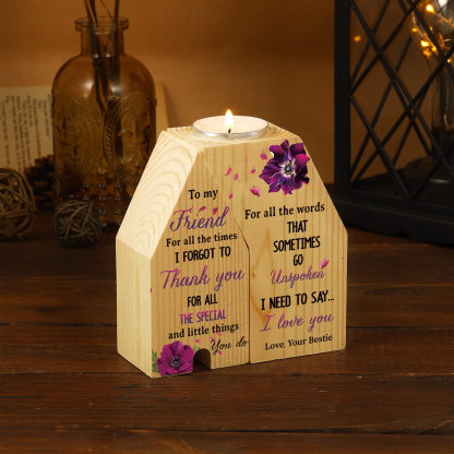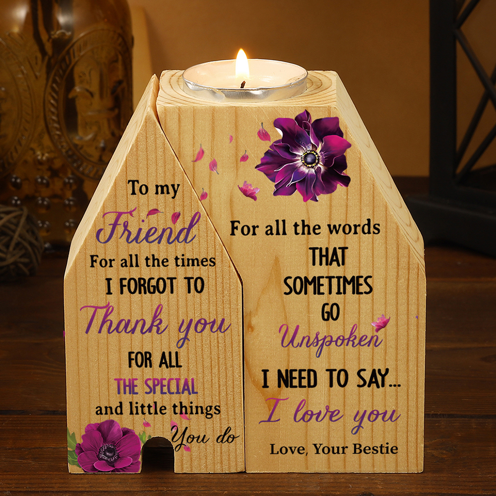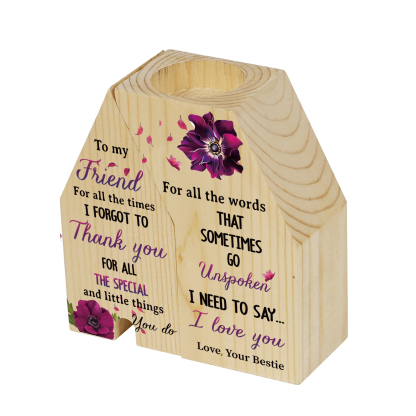 To My Friend Violets Flower Trapezoidal Candle Holder "I Need To Say I Love You" Wooden Candlestick