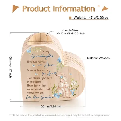 To My Granddaughter Wooden Bunny Heart Candle Holder "Never feel that you are alone"