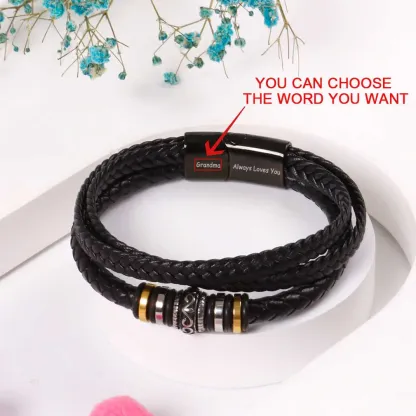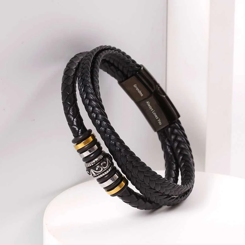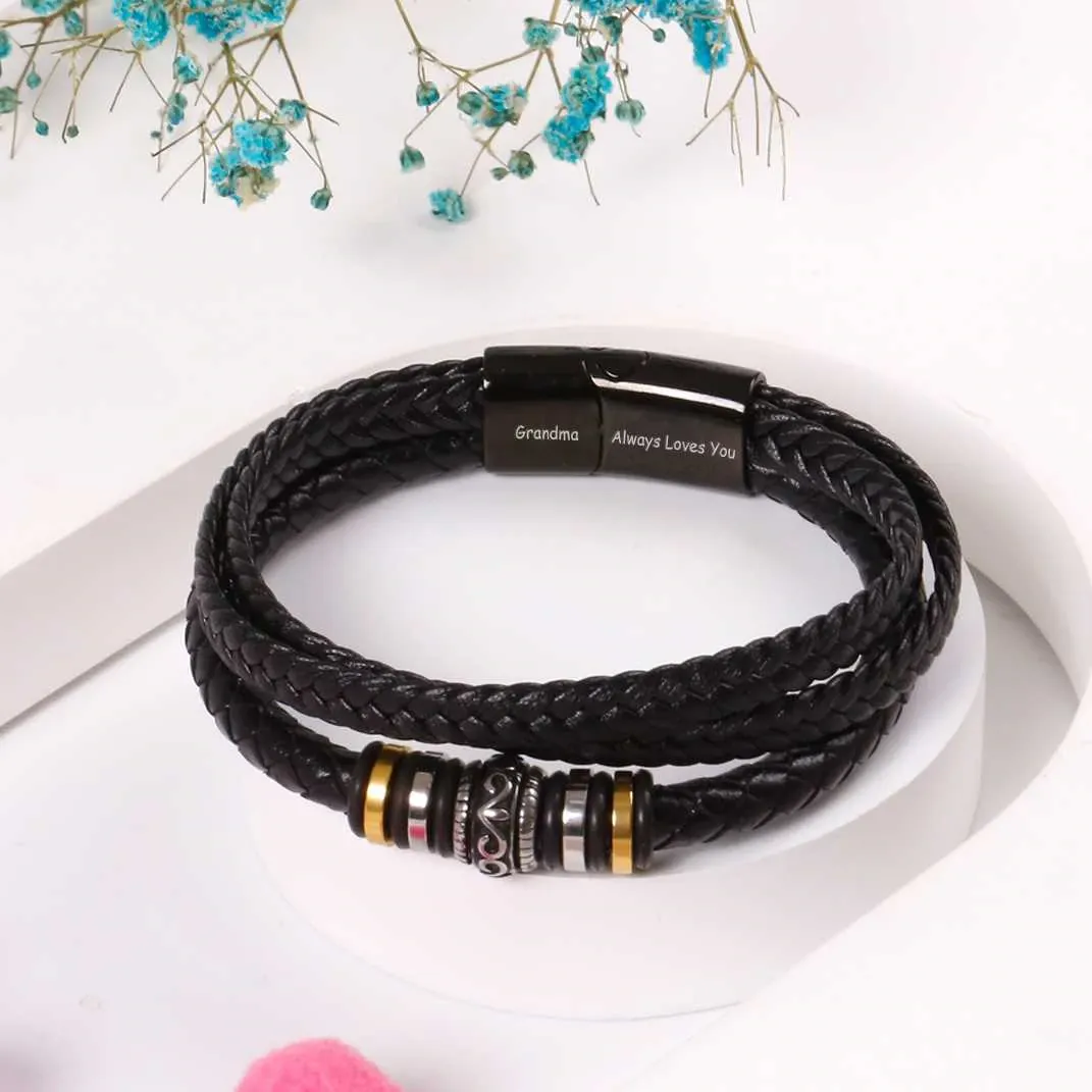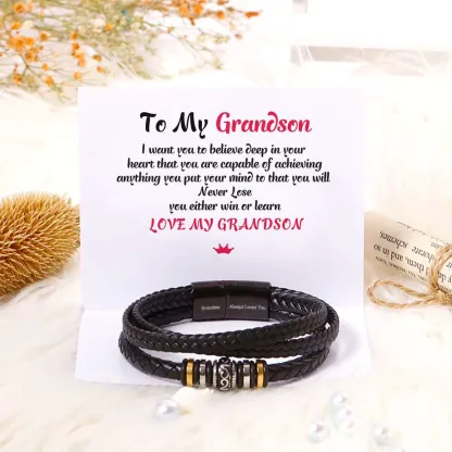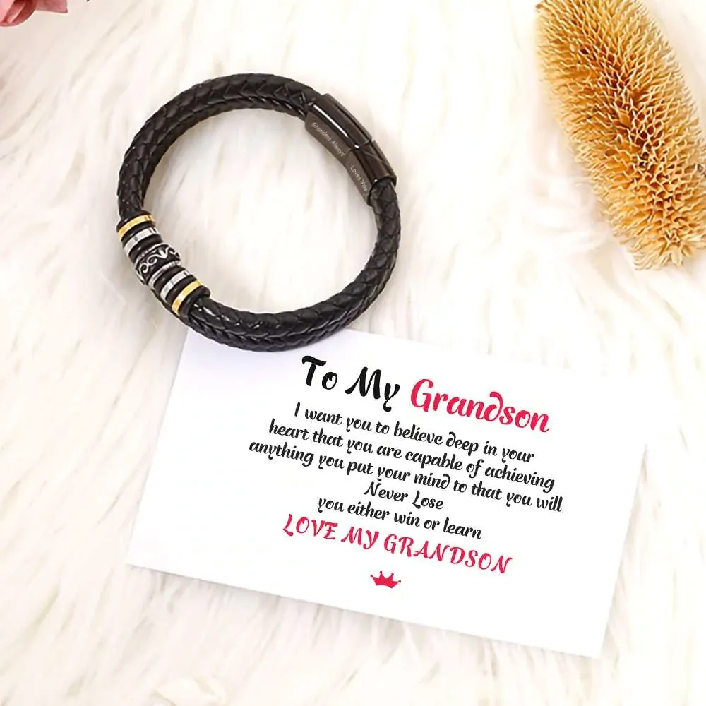 To My Grandson, Inspirational Leather Bracelet Bangle with Message Card Gifts For Him