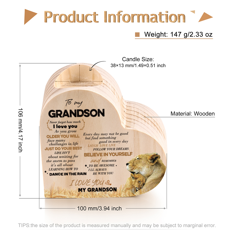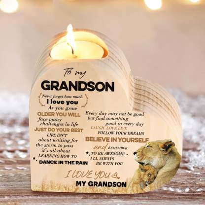 To My Grandson Wooden Heart Candle Holder "remember how much I love you"
