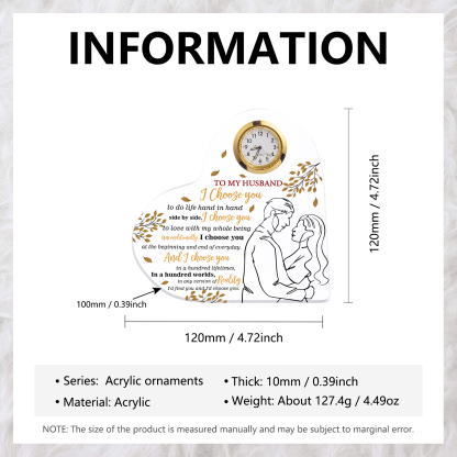 To My Husband Acrylic Heart Clock Keepsake Heart Sign - I choose you to do life hand in hand side by side