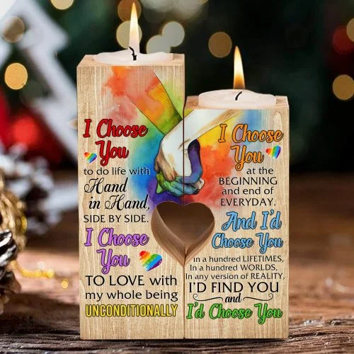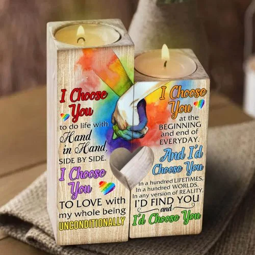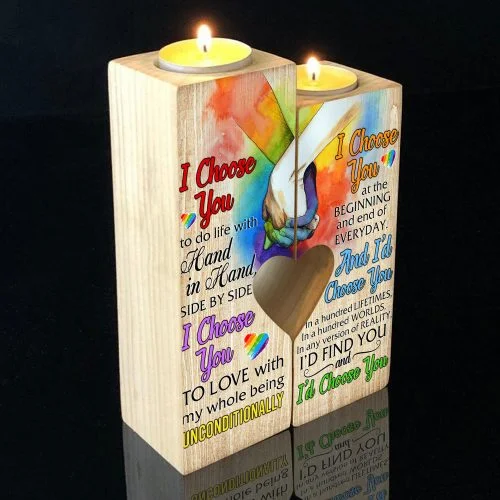 To My Love. I Choose You. LGBT Heart Candle Holder