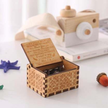 This exquisite wooden music box is loved for its vivid and unique design, with meaningful information engraved in the box.