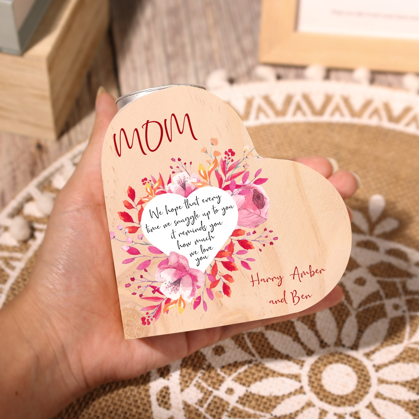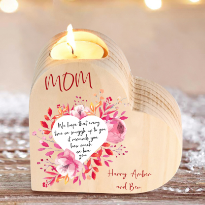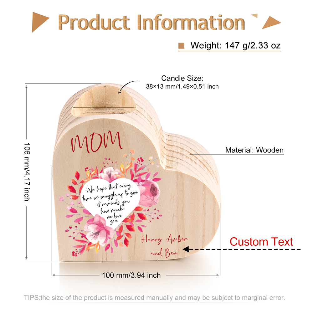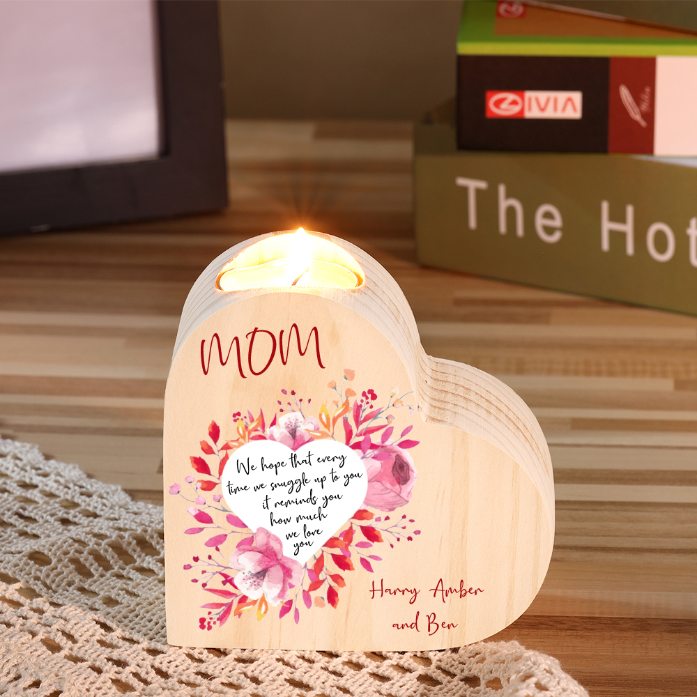To My Mom Personalized Name Heart Candle Holder Wooden Candlestick "it reminds you how much we love you"