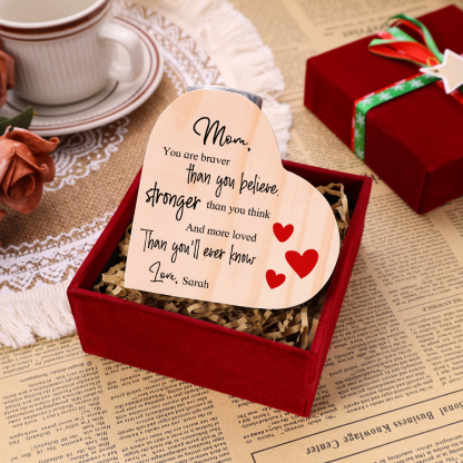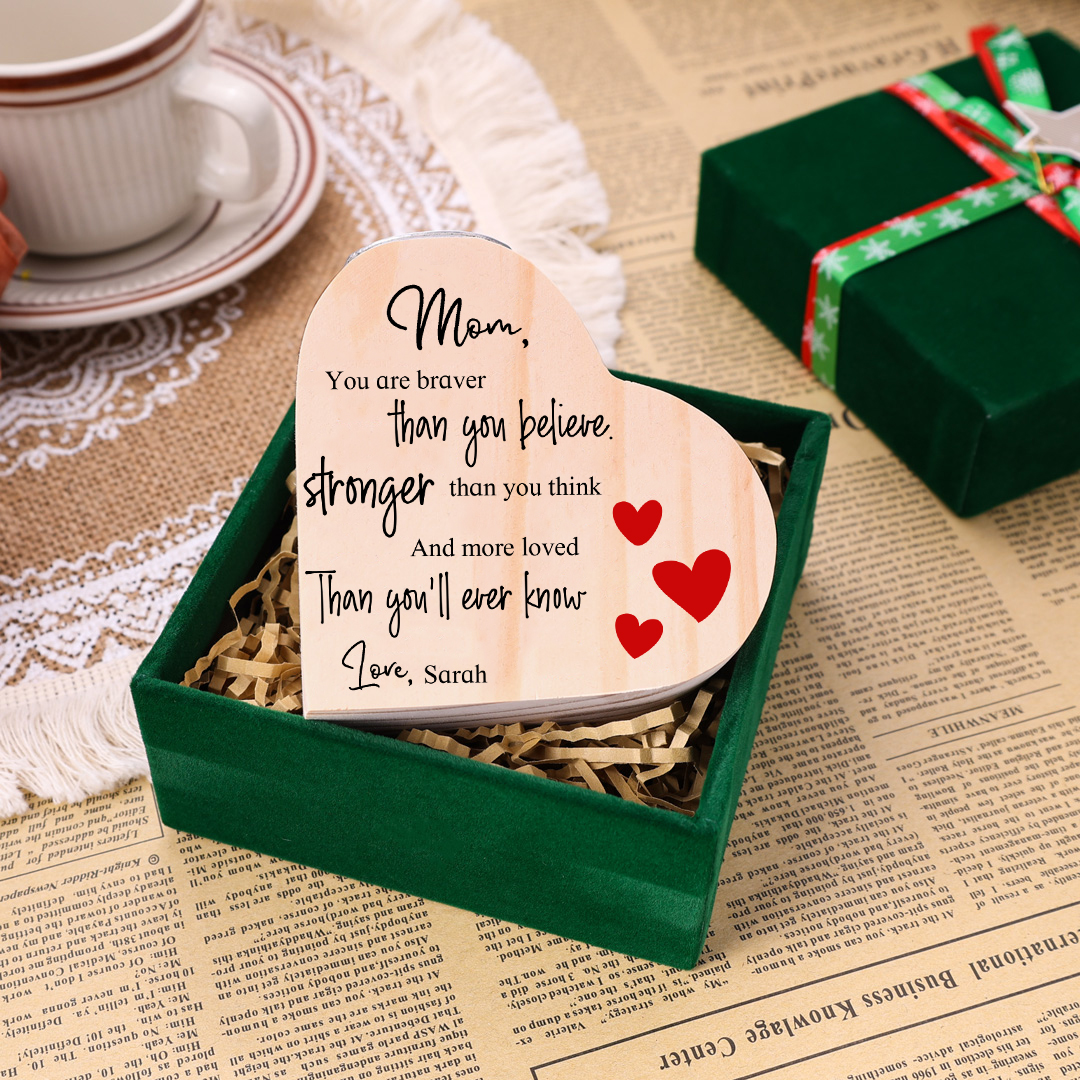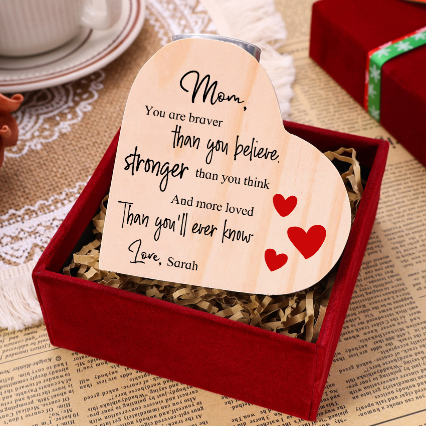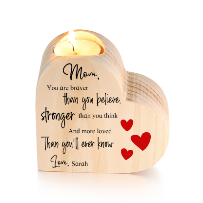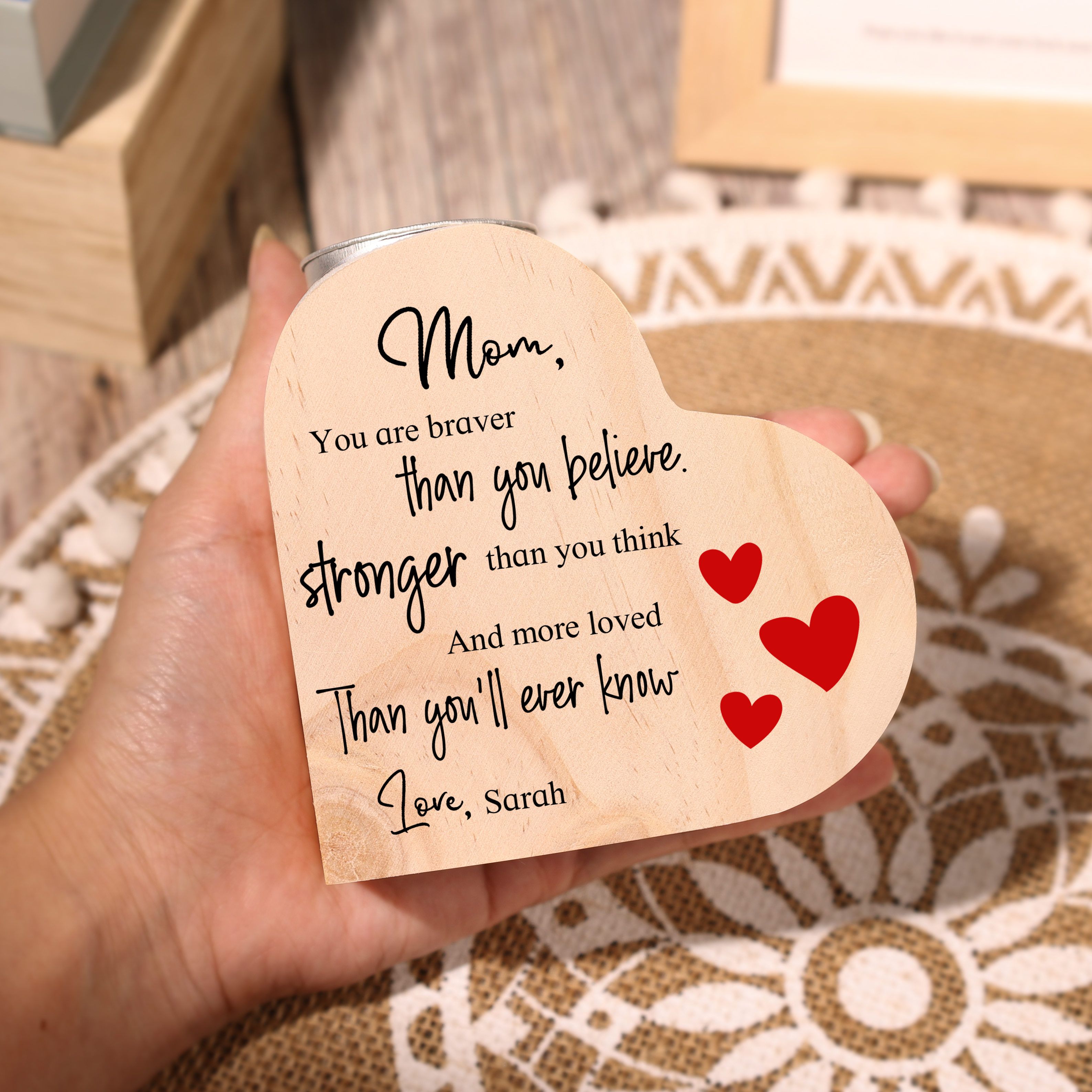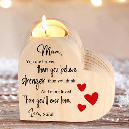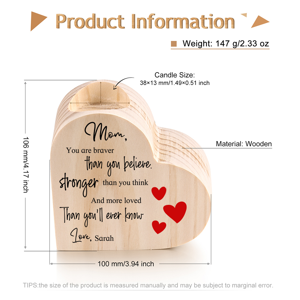 To My Mom Personalized Name Heart Candle Holder Wooden Candlestick "You are braver than you believe"
