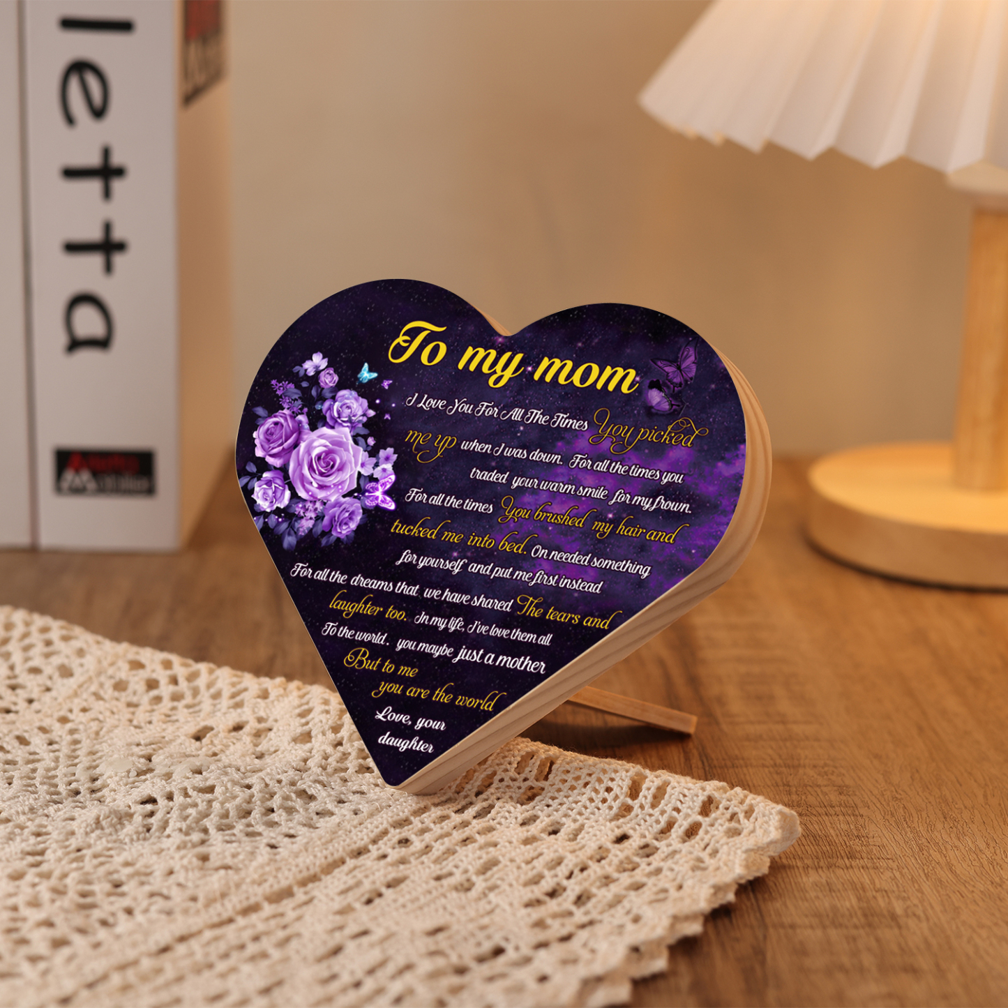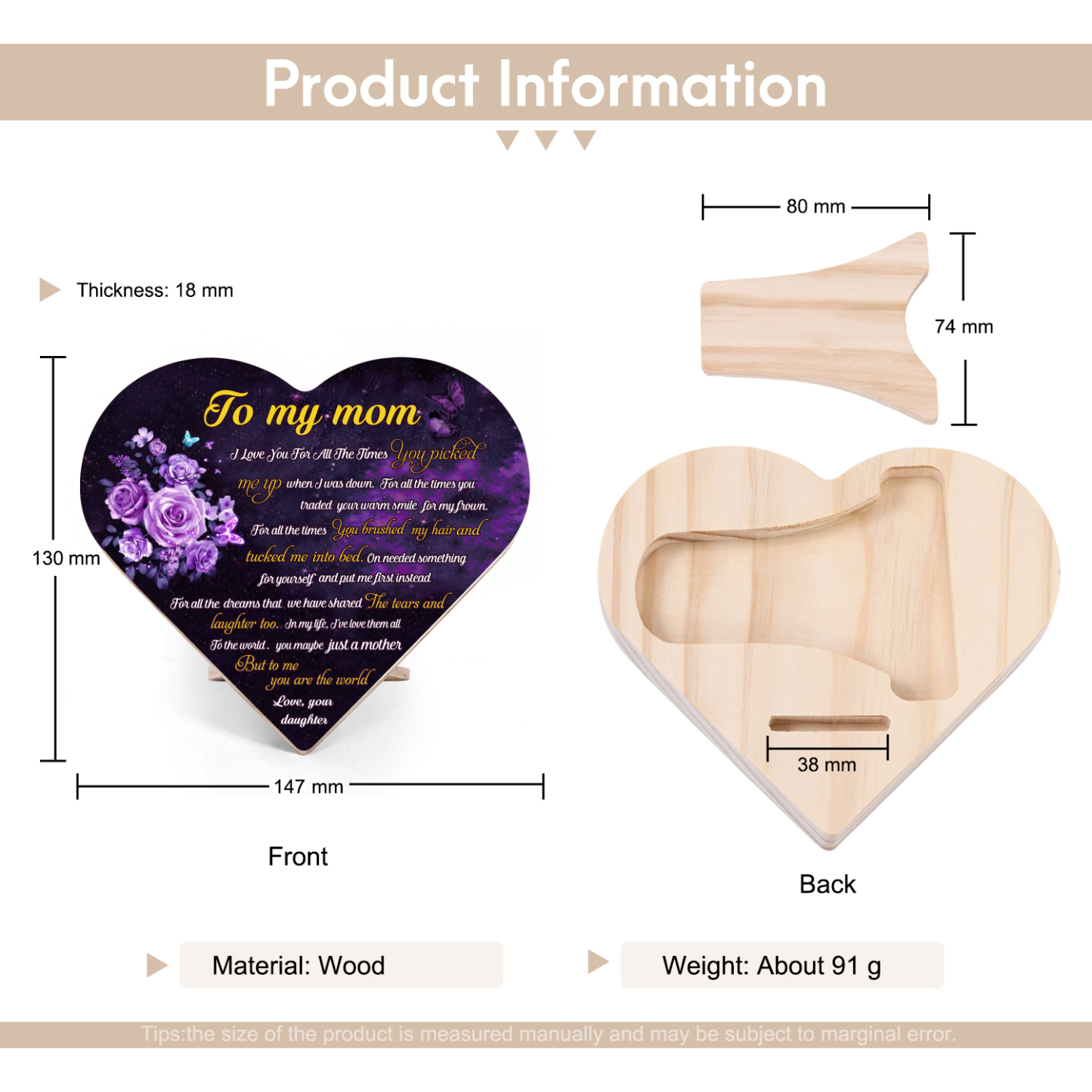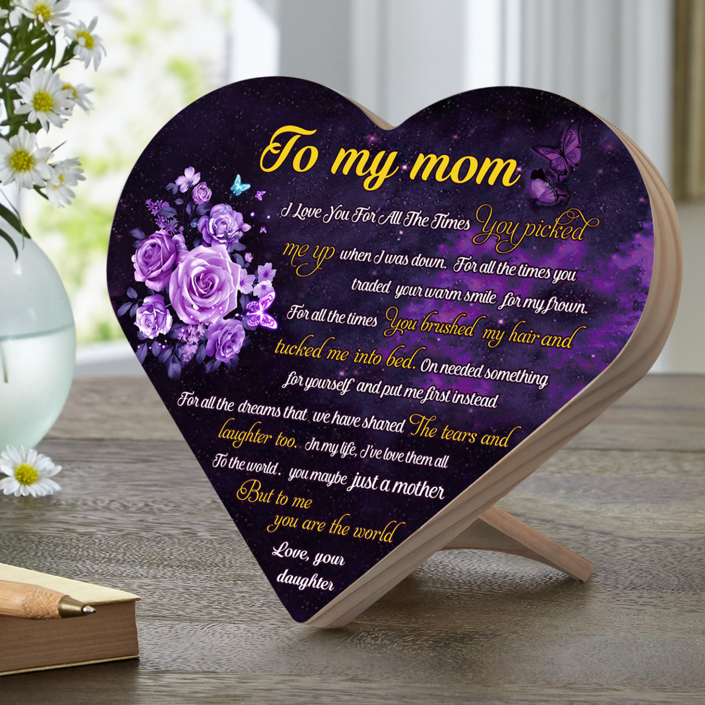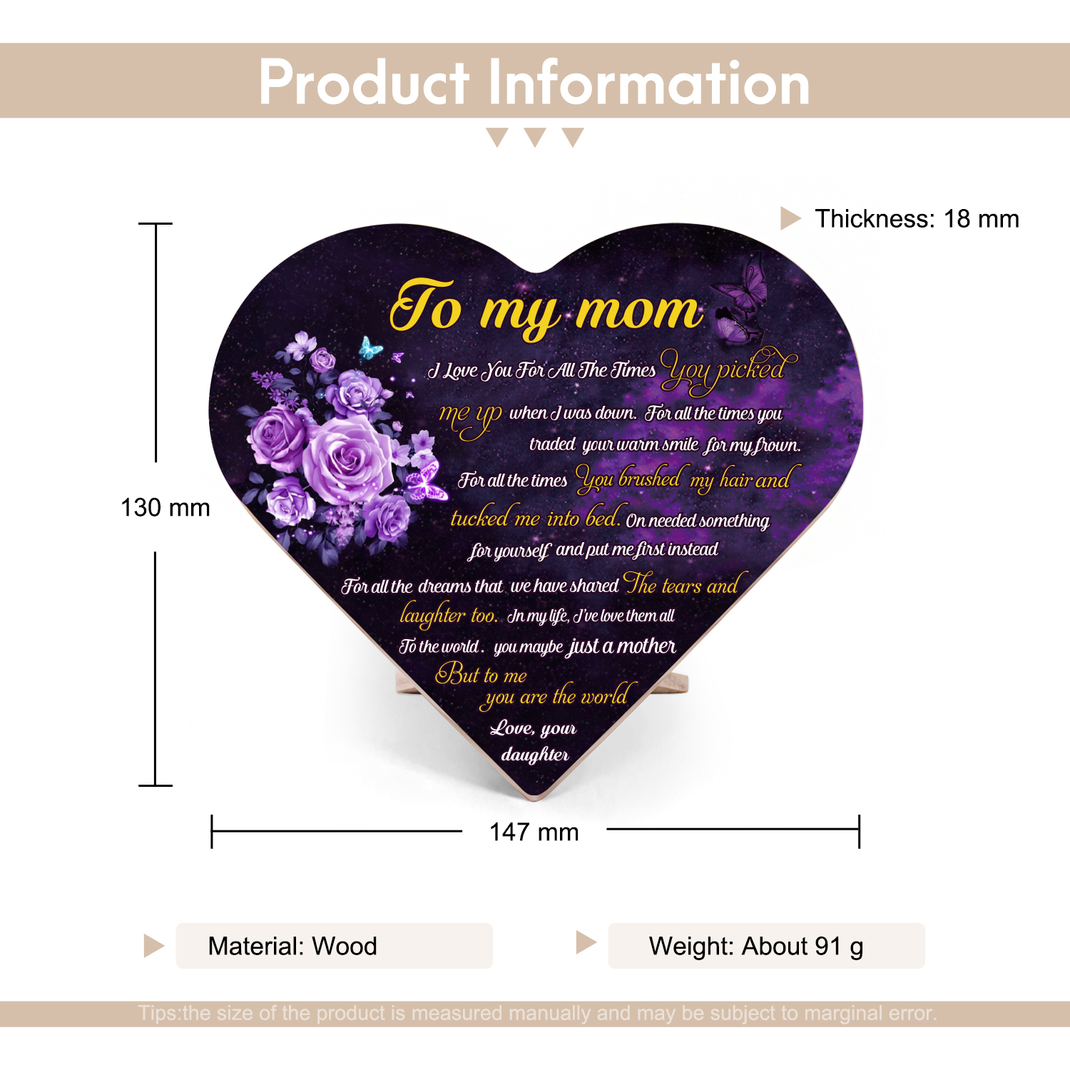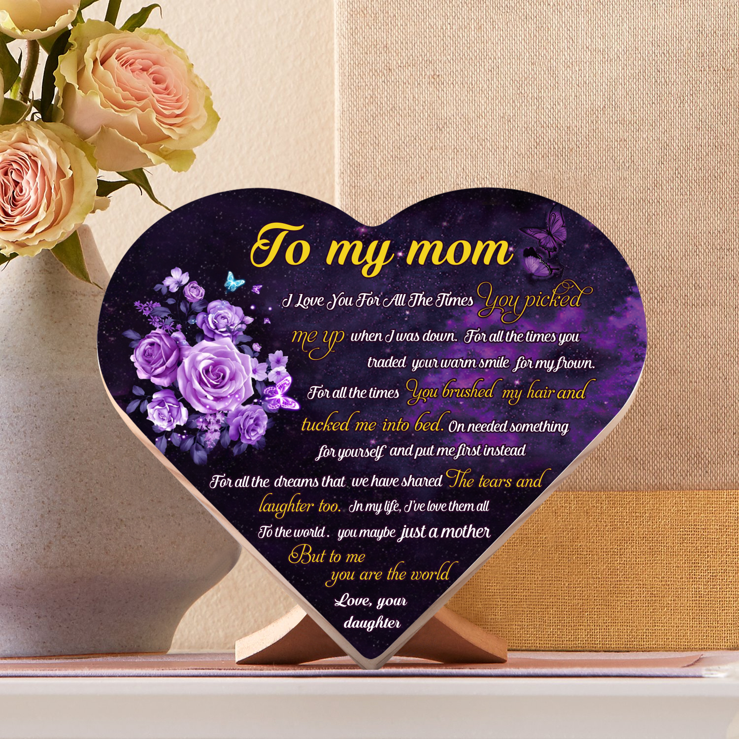 To My Mom Wooden Flowers Heart Keepsake Desktop Ornament Mothers Gifts