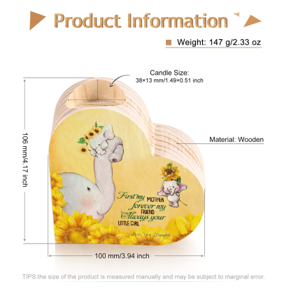 To My Mom-Wooden Heart Candle Holder Elephant Candlesticks "Always your little girl" Gifts For Mother
