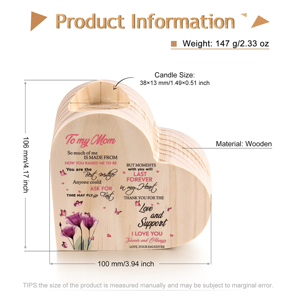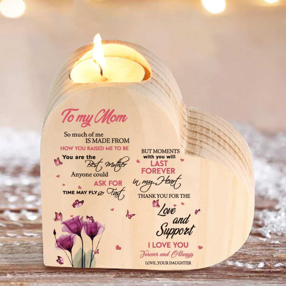 To My Mom-Wooden Heart Candle Holder Flower Candlesticks "Thank you for the love and support" Gifts For Mother