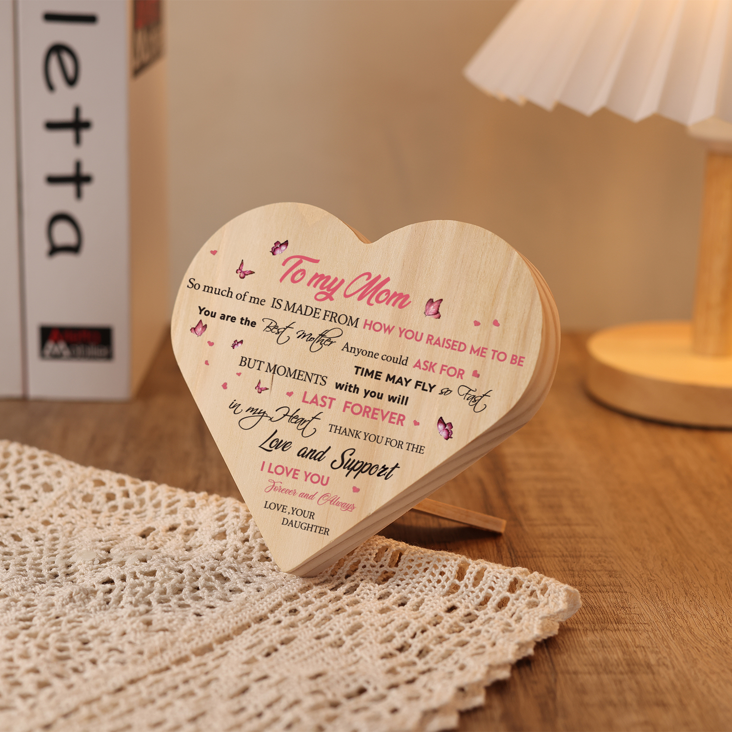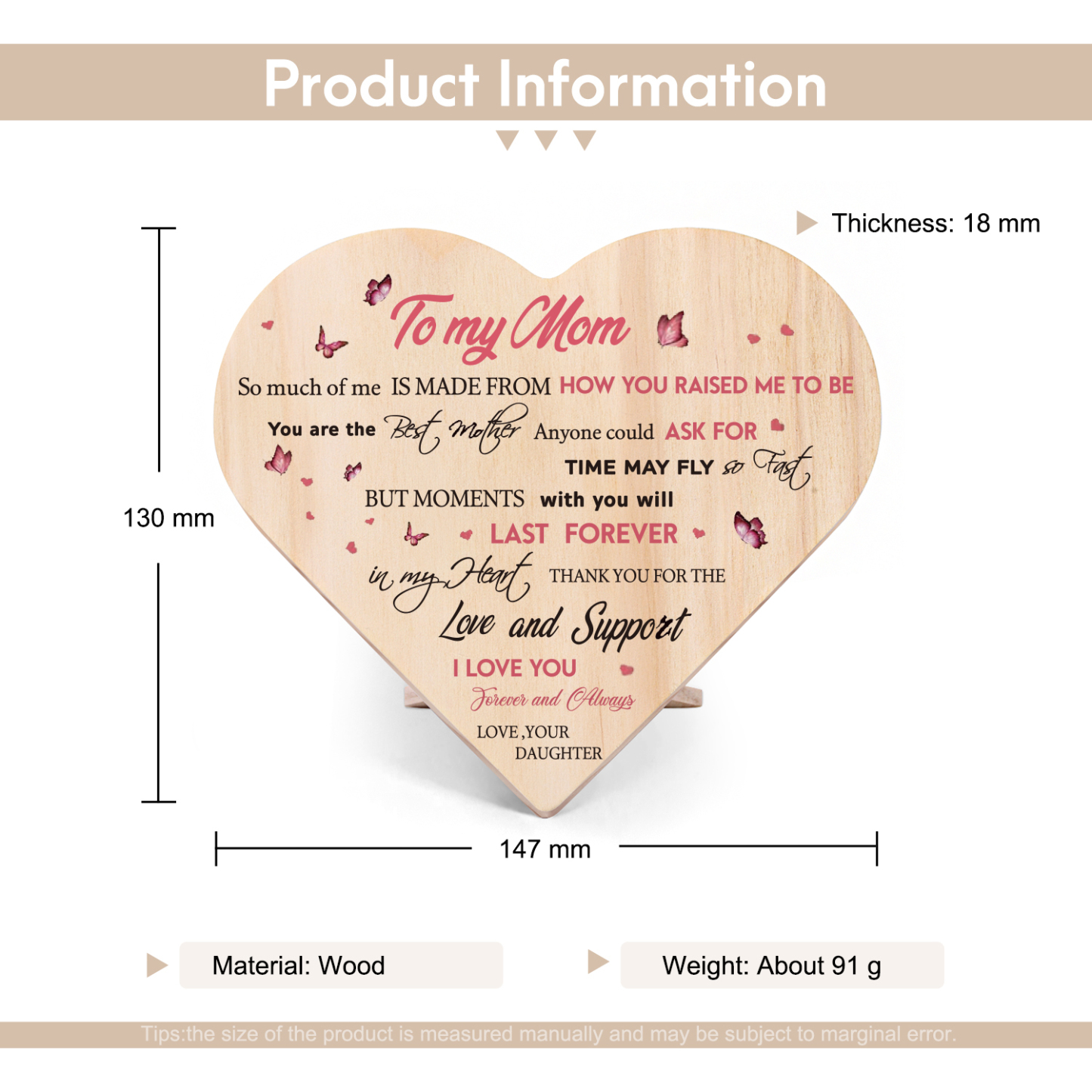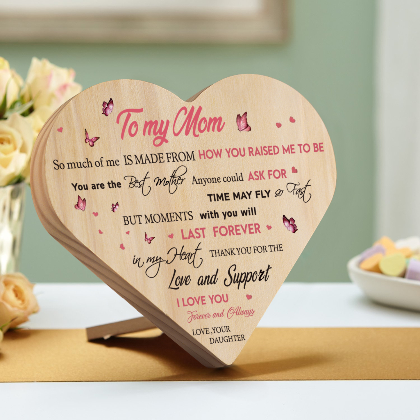 To My Mom Wooden Heart Keepsake Desktop Ornament "I LOVE YOU Forever and Always" Mothers Gifts