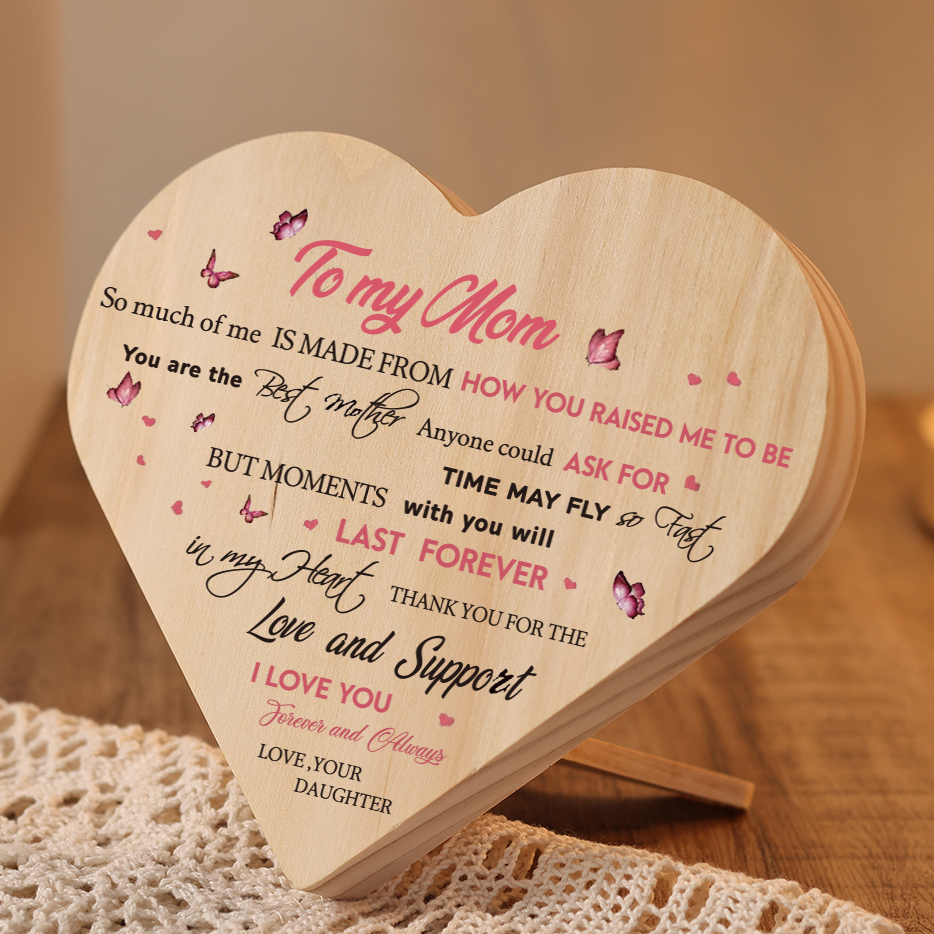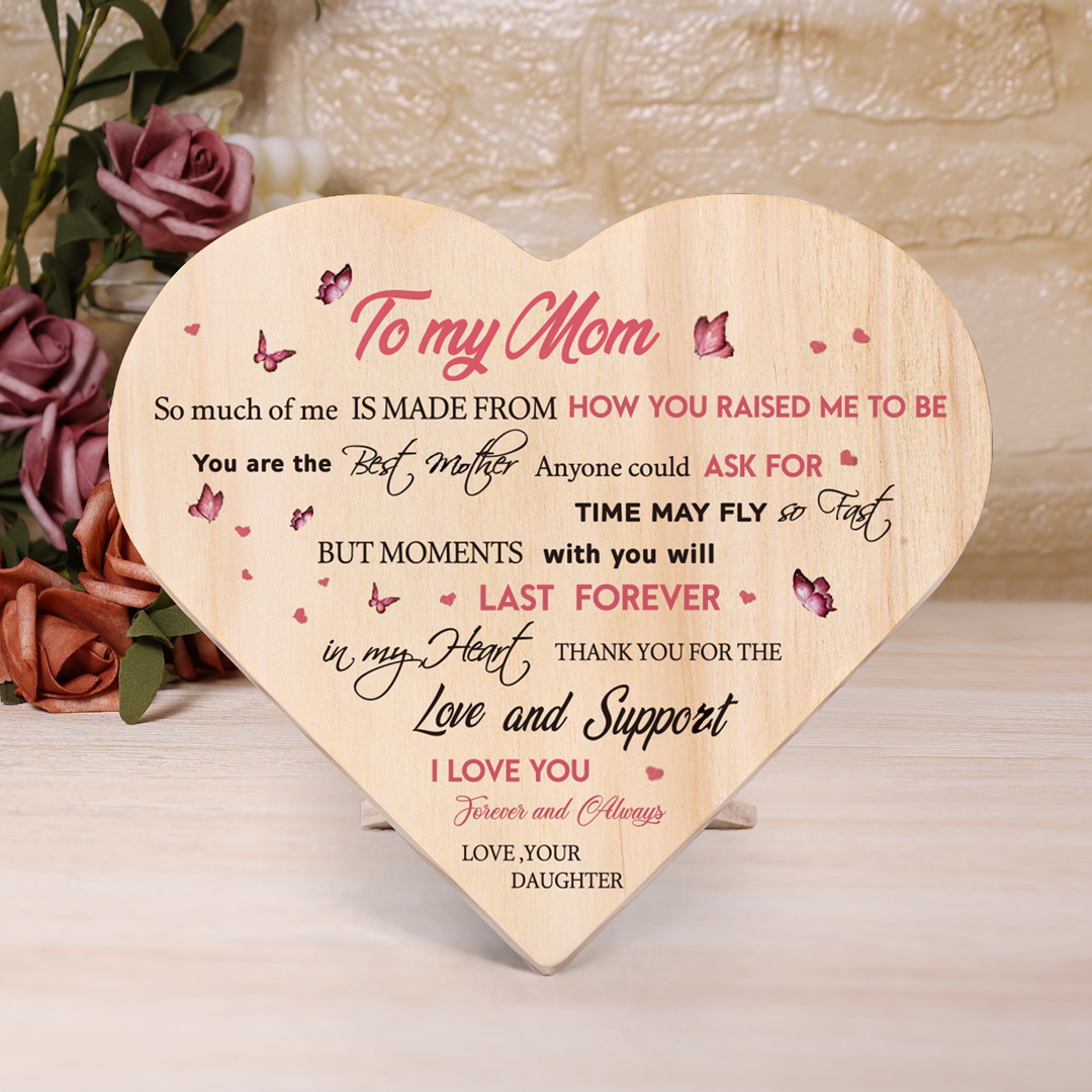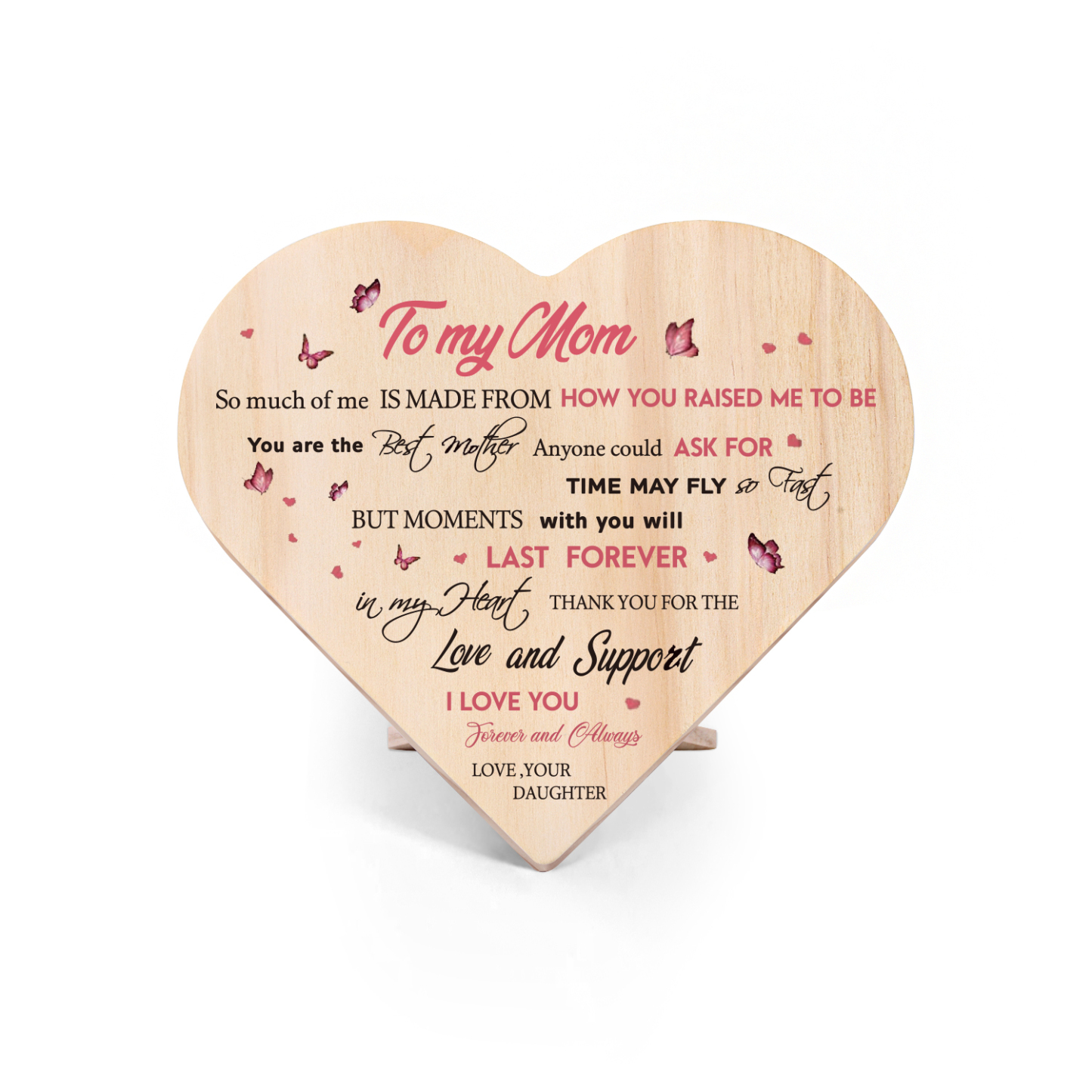 To My Mom Wooden Heart Keepsake Desktop Ornament "I LOVE YOU Forever and Always" Mothers Gifts