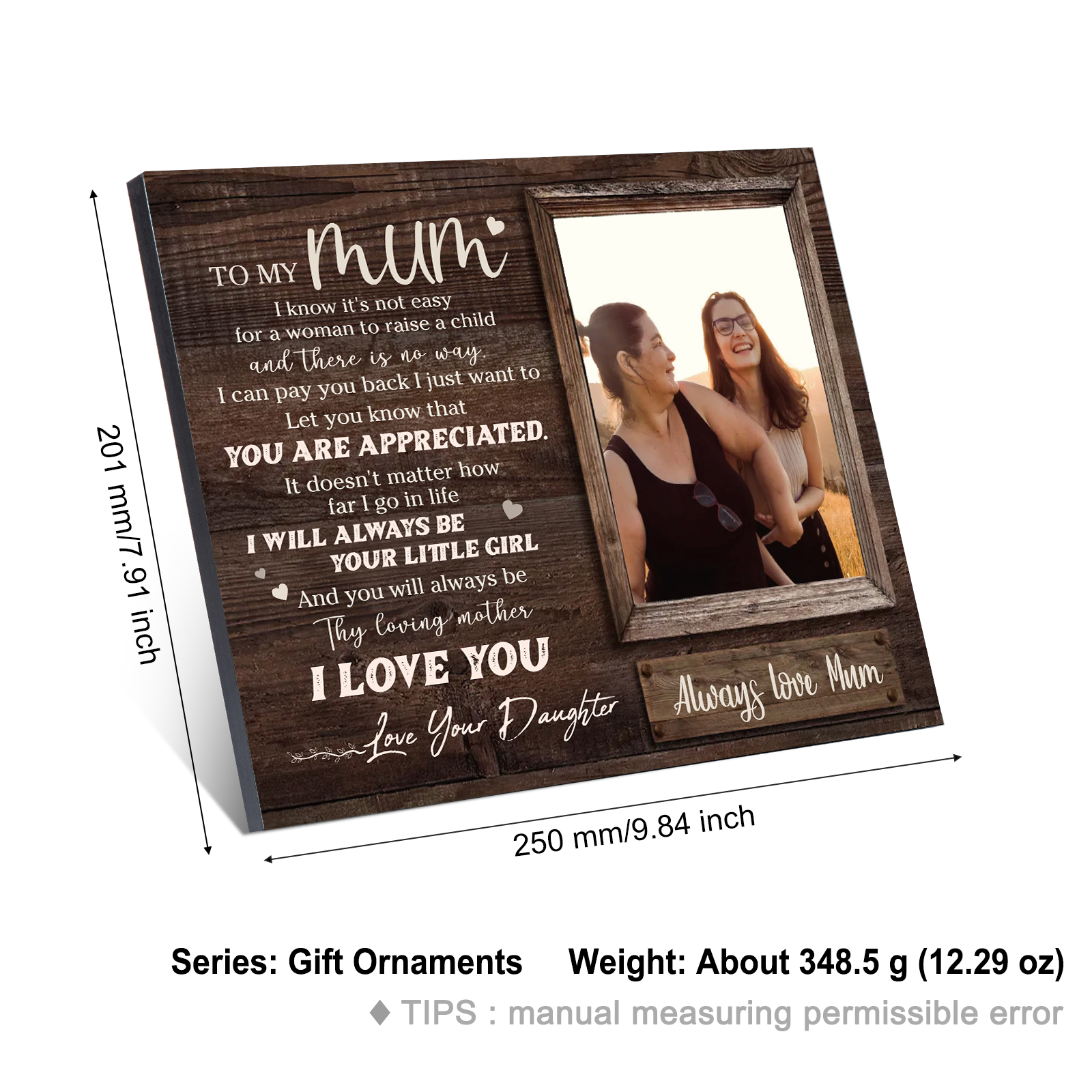To My Mum Frame Personalized Photo Wooden Ornament Home Decoration for Mum