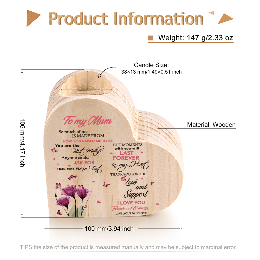 To My Mum-Wooden Heart Candle Holder Flower Candlesticks "last forever in my heart" Gifts For Mother