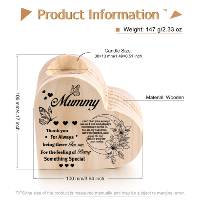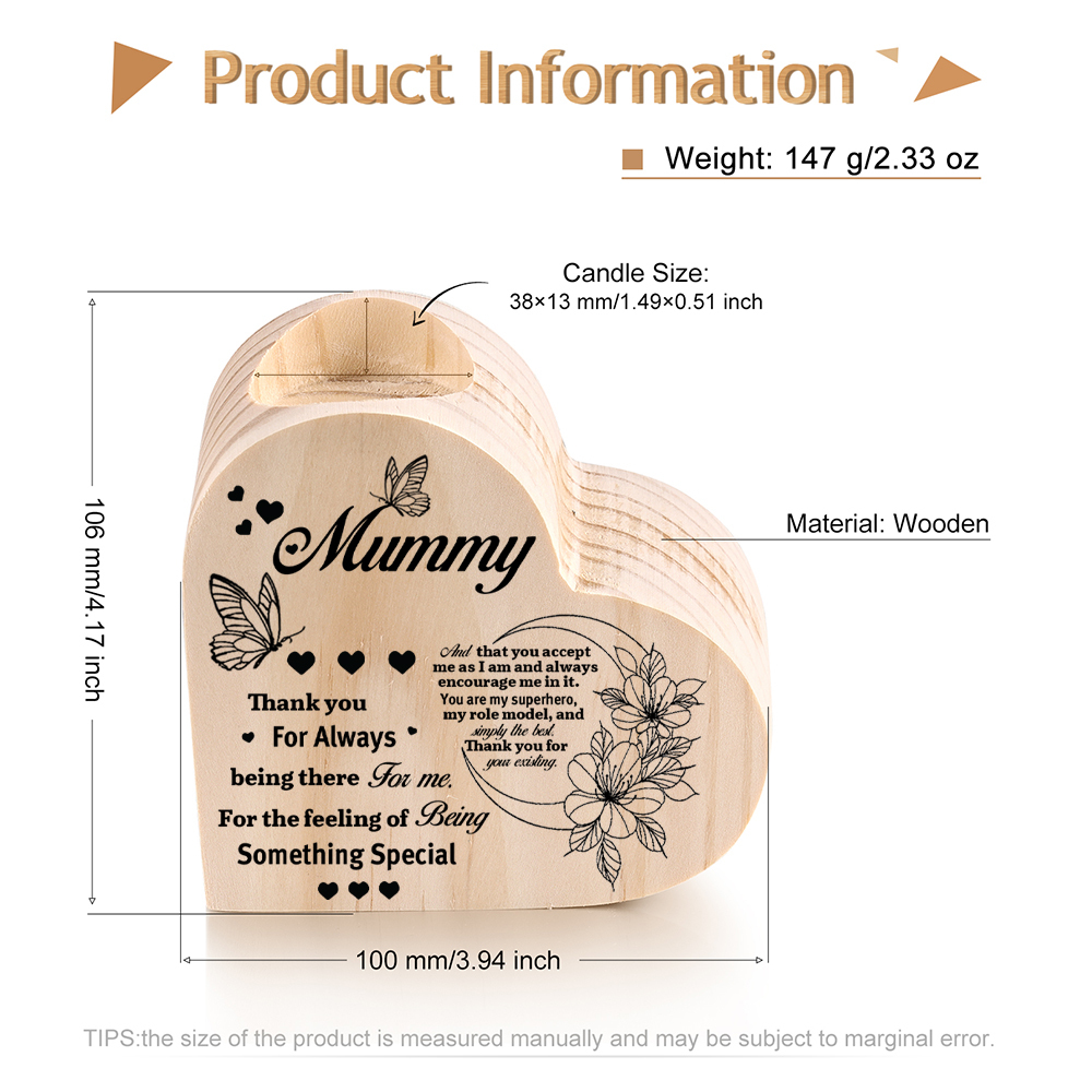 To My Mummy Heart Candle Holder Wooden Candlestick "Thank you For Always being there for me"