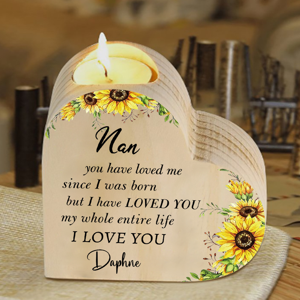 To My Nan Customize Text Sonflower Candlesticks-I Love You-Heart Wooden Candle Holder from Granddaughter