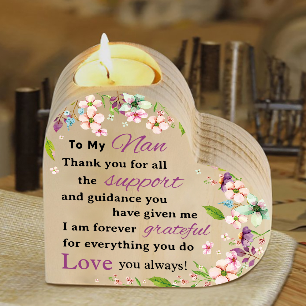 To My Nan Flower Candlesticks-Grateful For Everything You Do-Heart Wooden Candle Holder from Granddaughter