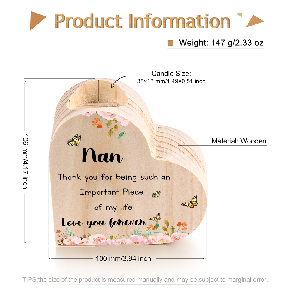 To My Nan Flower Candlesticks-Love You Forever-Heart Wooden Candle Holder from Granddaughter