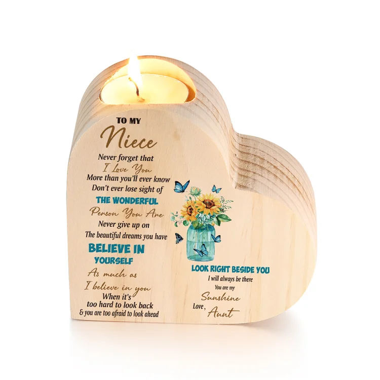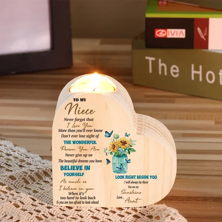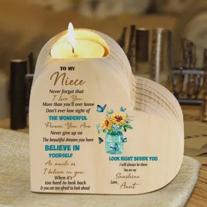 To My Niece Heart Candle Holder Believe in Yourself Wooden Candlestick