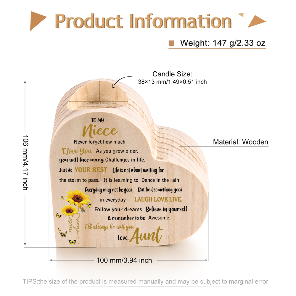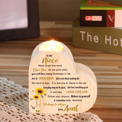 To My Niece Heart Candle Holder Follow Your Dreams Wooden Candlestick