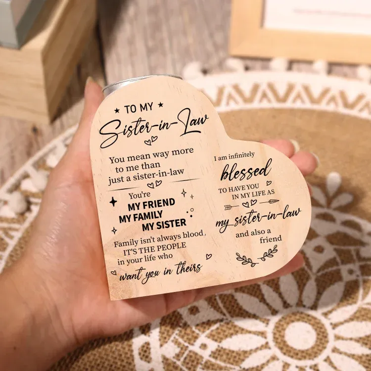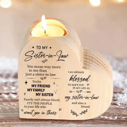 To My Sister-In-Law Heart Candle Holder "I am infinitely blessed to have you in my life" Wooden Candlestick