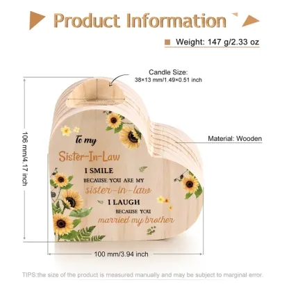 To My Sister-In-Law Heart Candle Holder "I Smile Because You Are My Sister-In-Law" Wooden Candlestick