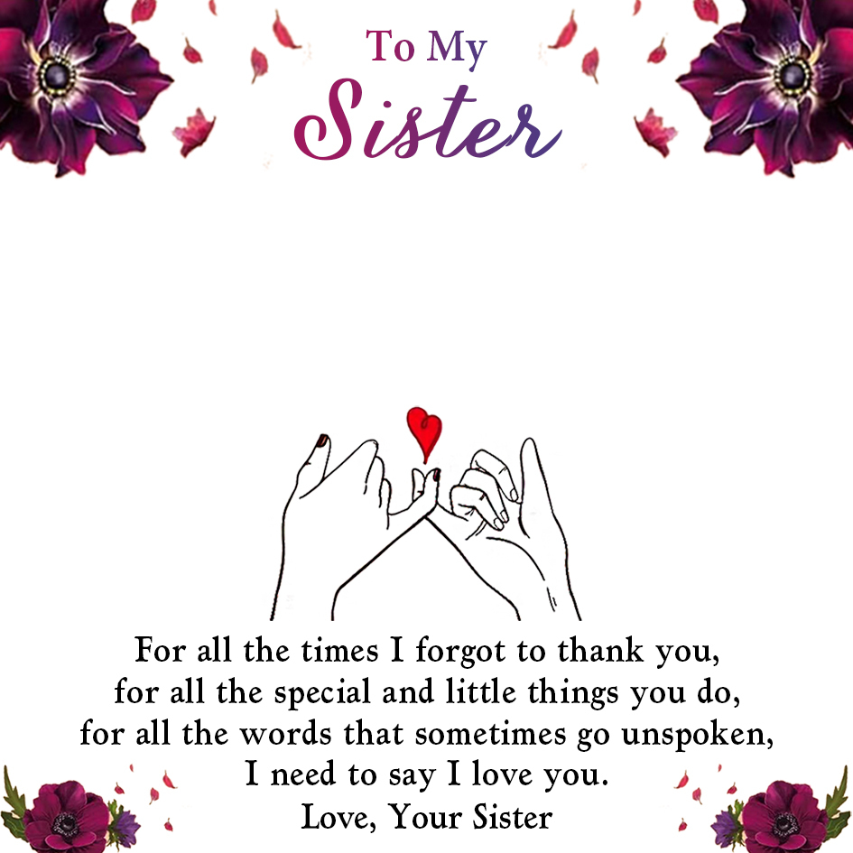To My Sister Necklace Set-S925 Sterling Silver Necklace with Violet Flower Gift Card Gift Box Set-Best Gift For Sister