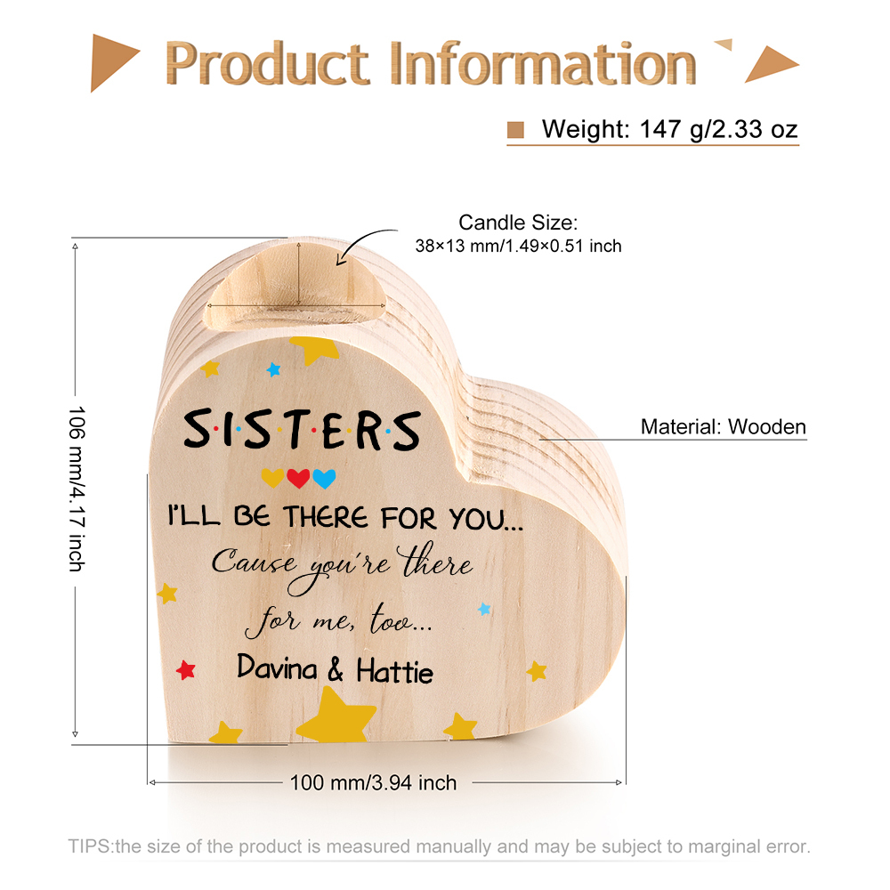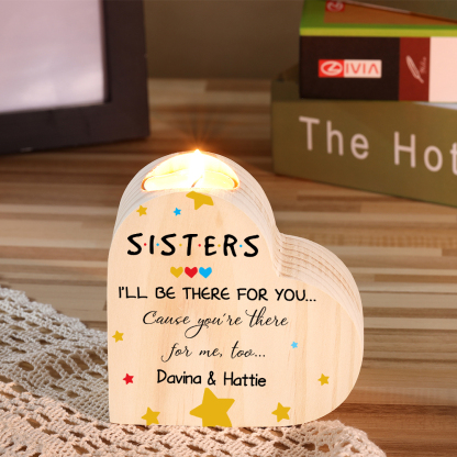 To My Sisters Wooden Candle Holder Customized 2 Names Candlesticks- I'll Be There For You