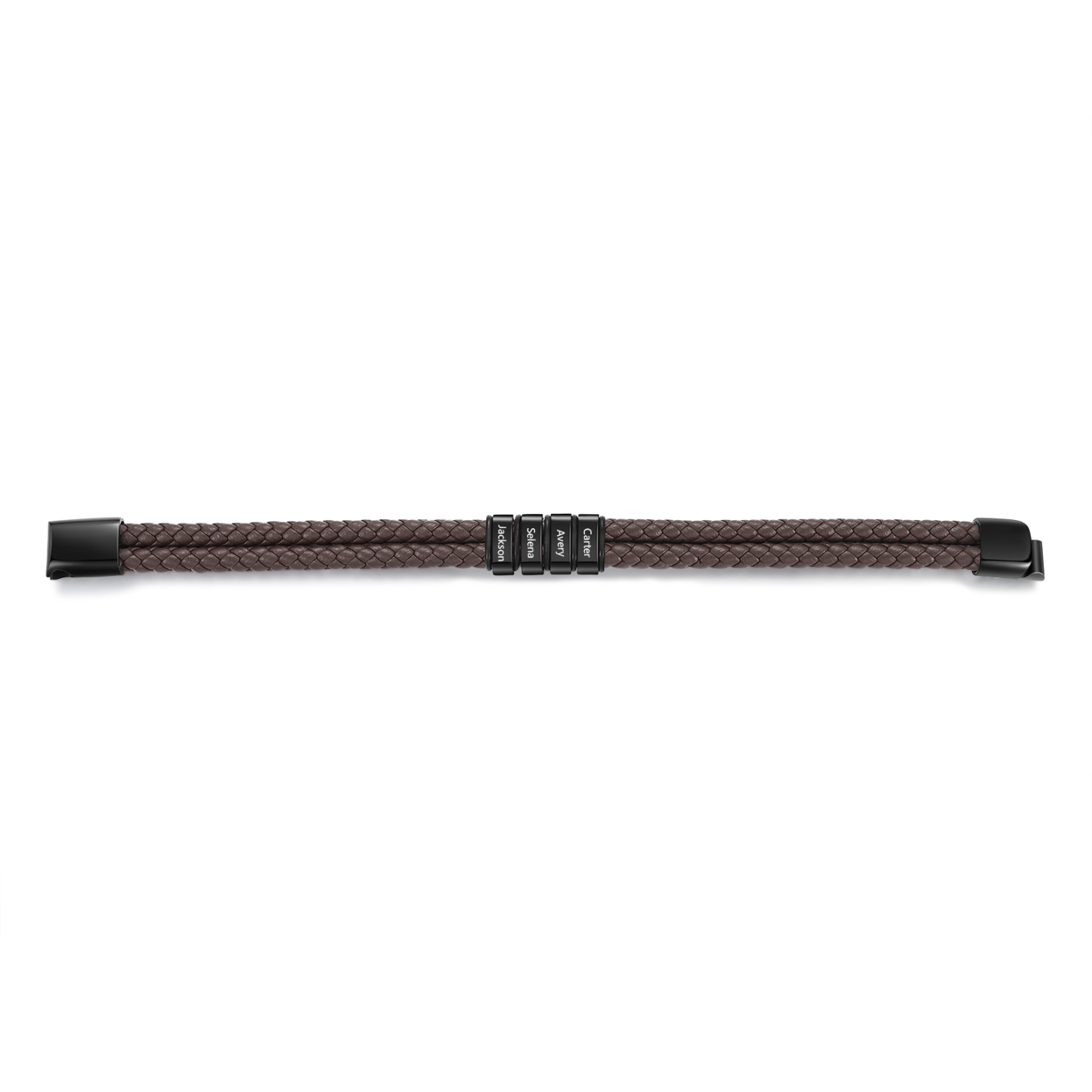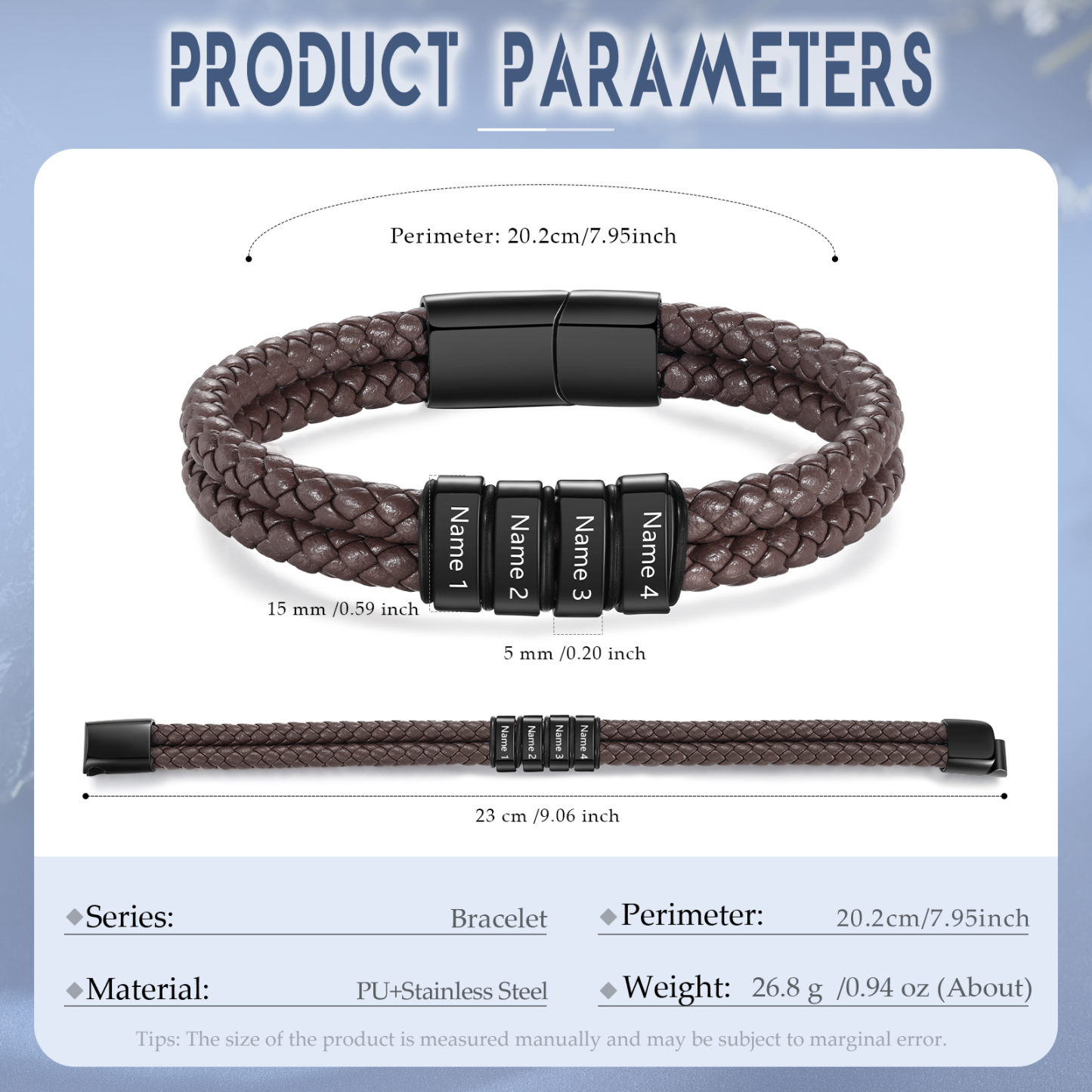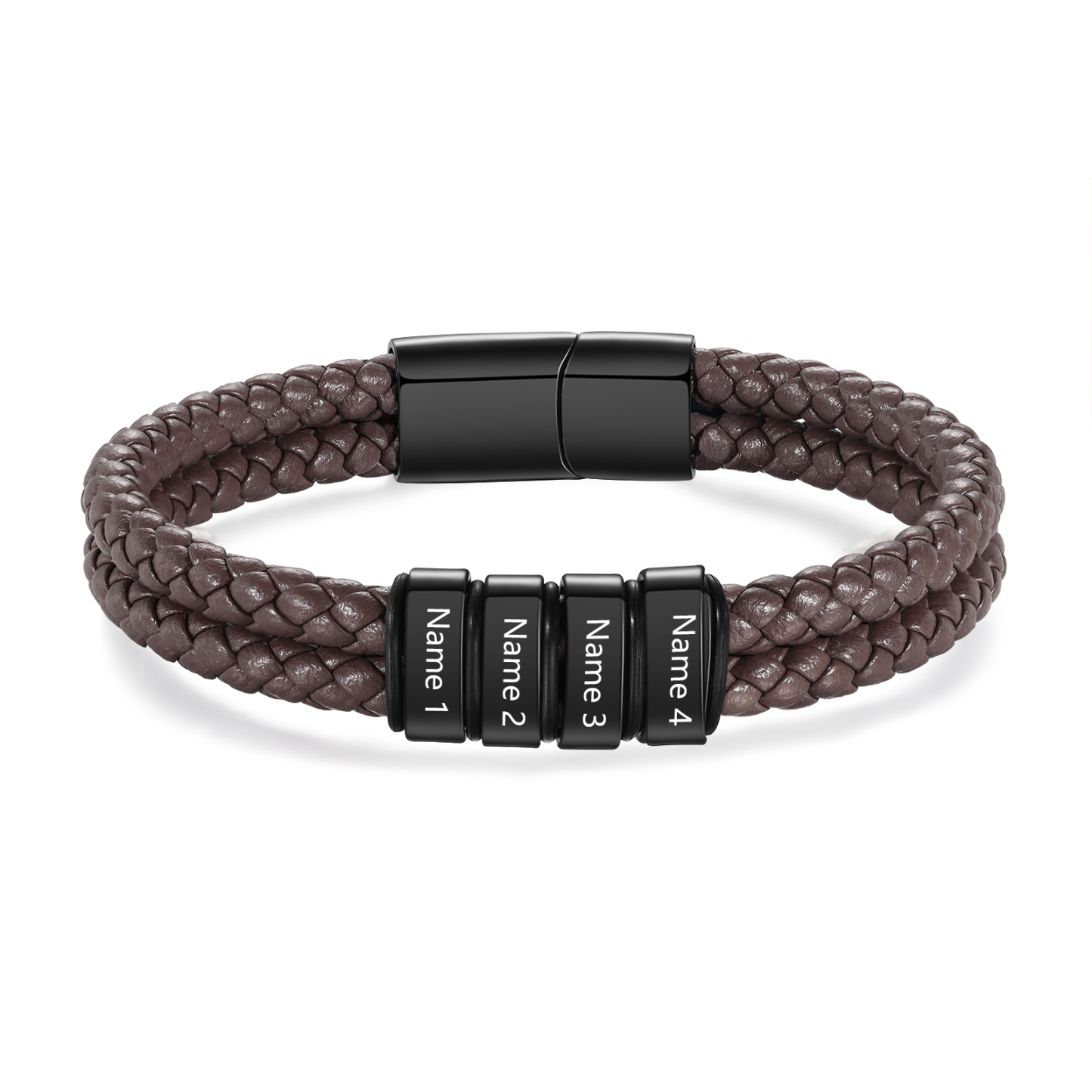 4 Names - Personalized Name Men's Leather Bracelet Gift for Him