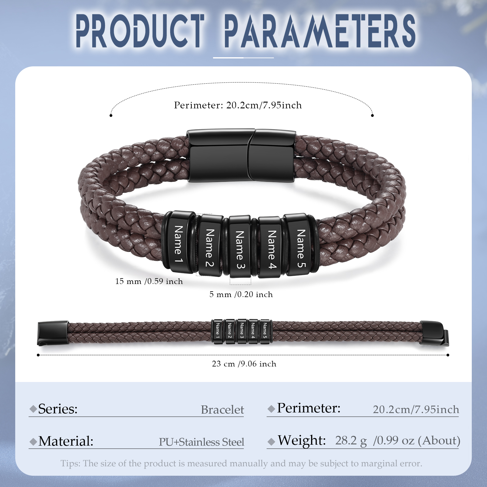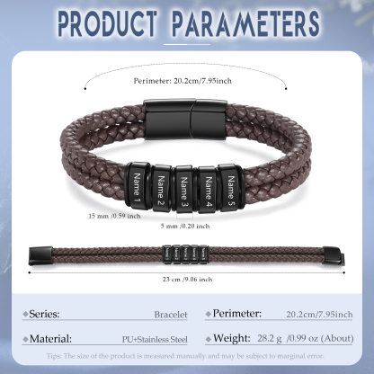 5 Names - Personalized Name Men's Leather Bracelet Gift for Him