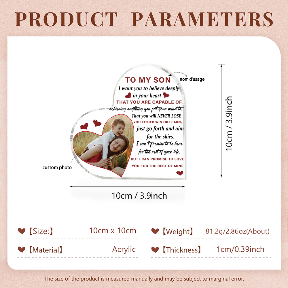 To My Son Personalized Acrylic Heart Keepsake Custom Plaque - I want you to believe deeply in your heart