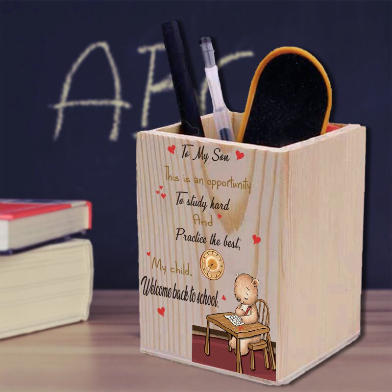 To My Son - Welcome Back to School - Wooden Pen Holder
