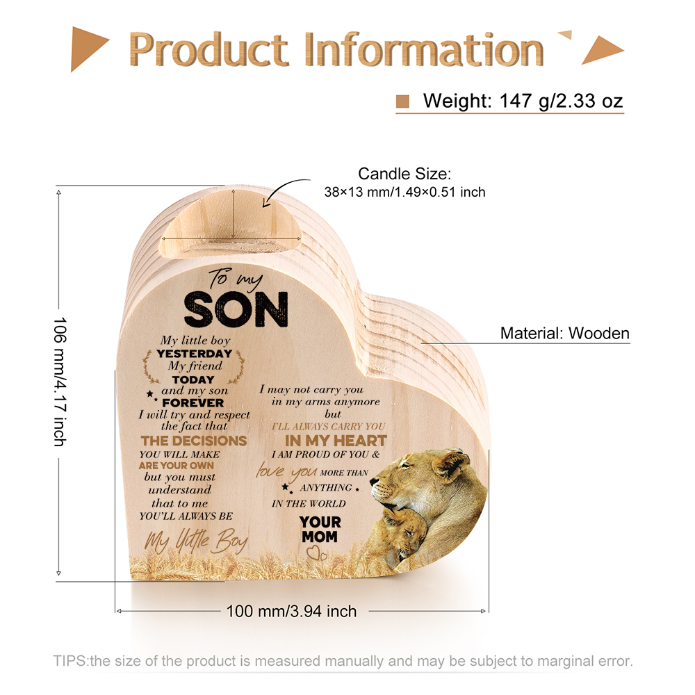To My Son Wooden Heart Candle Holder "I will always be there " Gifts For Son