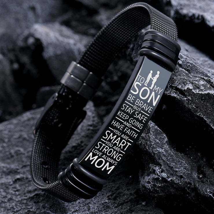 To My Son, You Are Braver Than You Believe Inspirational Bracelet Watchband Initial ID Bar Bangle Gifts For Men