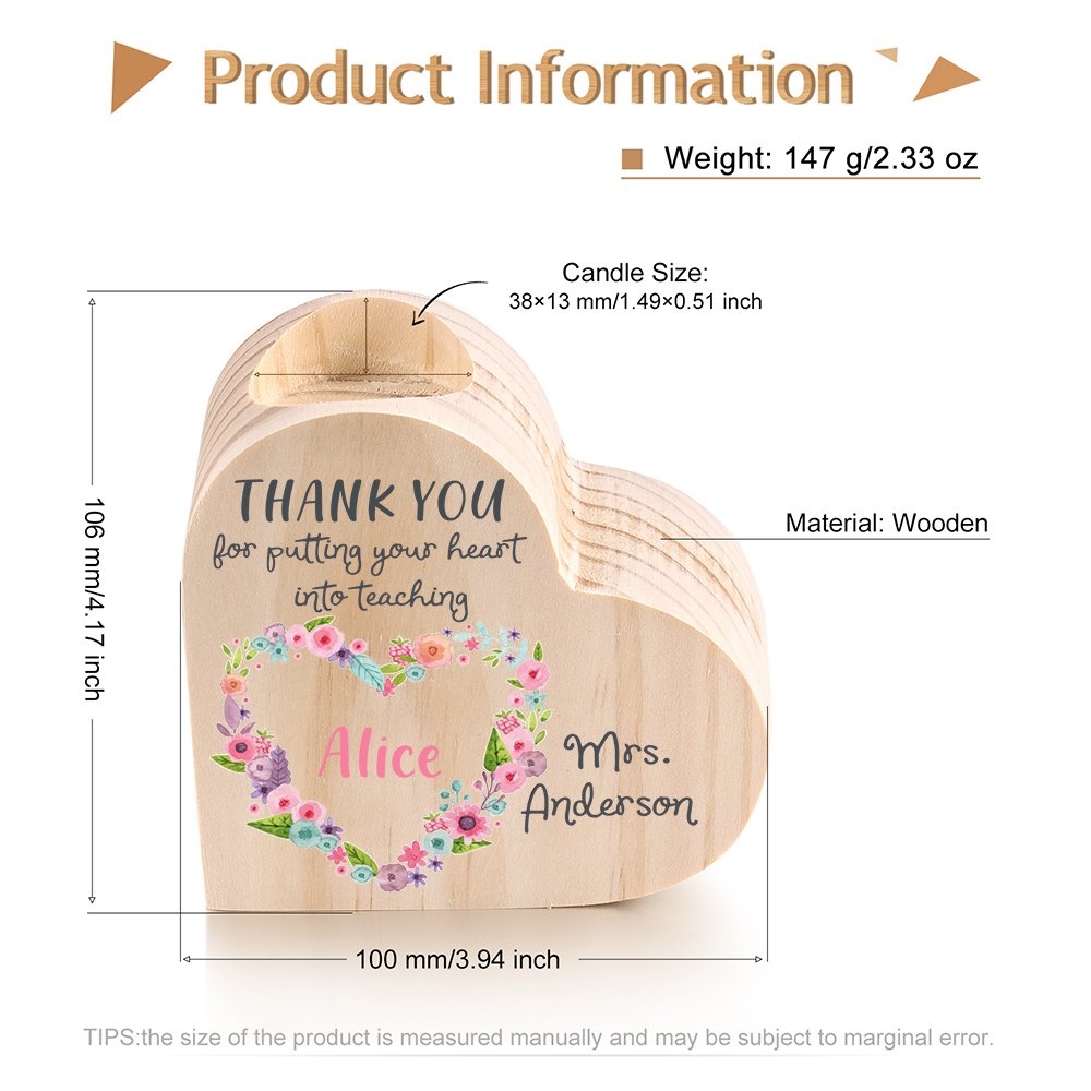 To My Teacher Name Personalized Heart-Shape Candlesticks-Thank you-Wooden Custom Text Candle Holder For Teacher