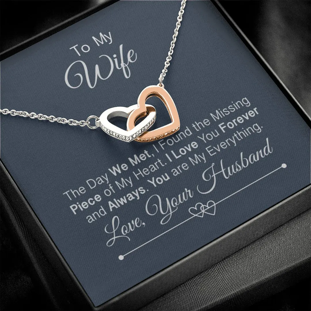 For a special gift, she'll cherish forever, our Joined Hearts Pendant Necklace is just the thing! Show your wife how much she means to you with this unique gift set, featuring a unique joined hearts design necklace and heartfelt message.