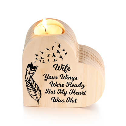 To My Wife Wooden Heart Candle Holder Memorial Candlesticks "Your Wings Were Ready"