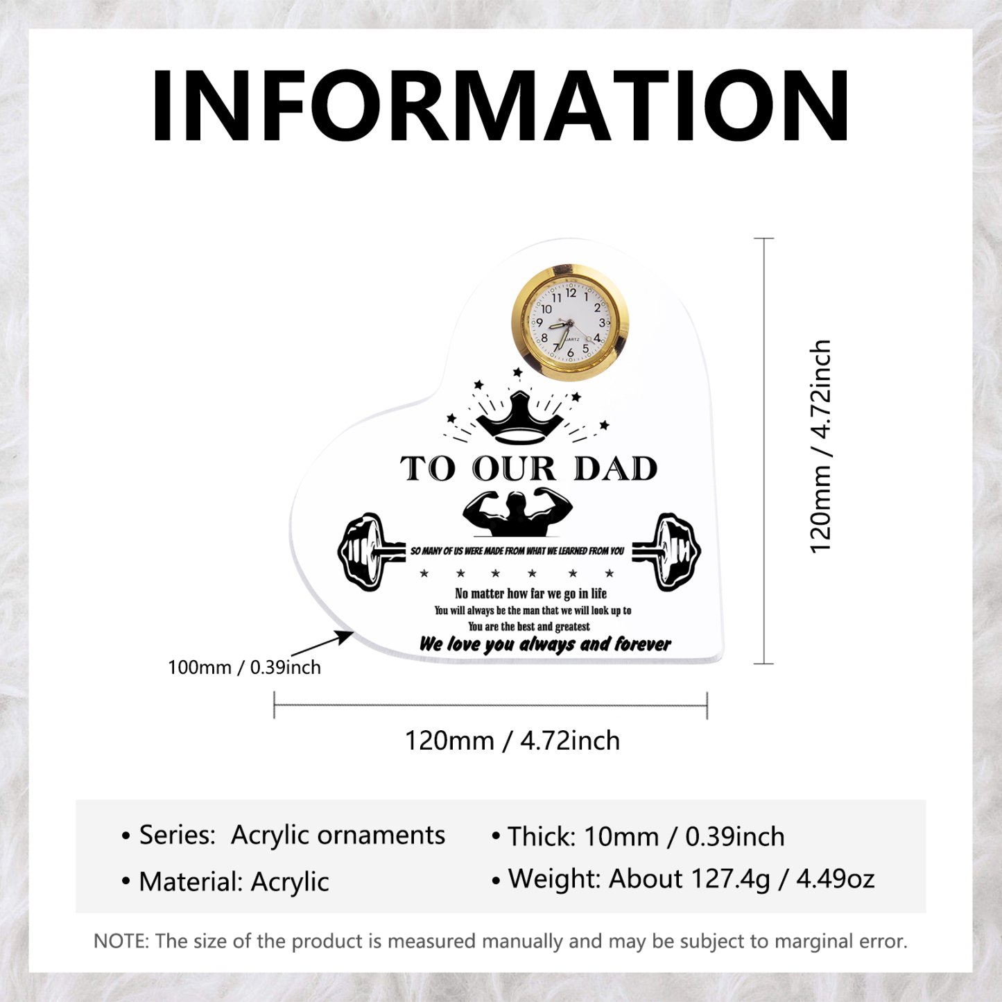 To Our Dad Acrylic Heart Clock Keepsake Heart Sign - You are the best and greatest
