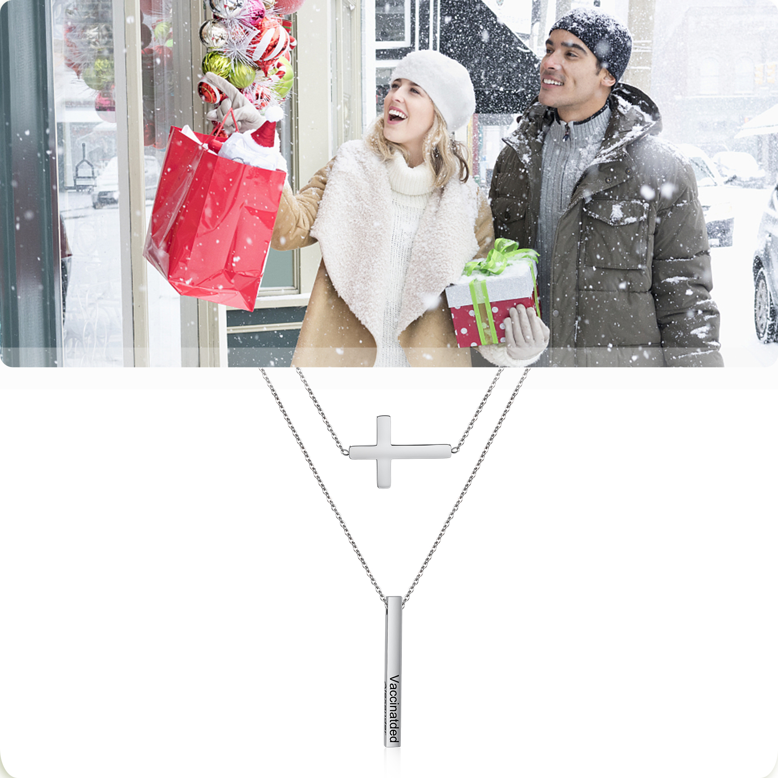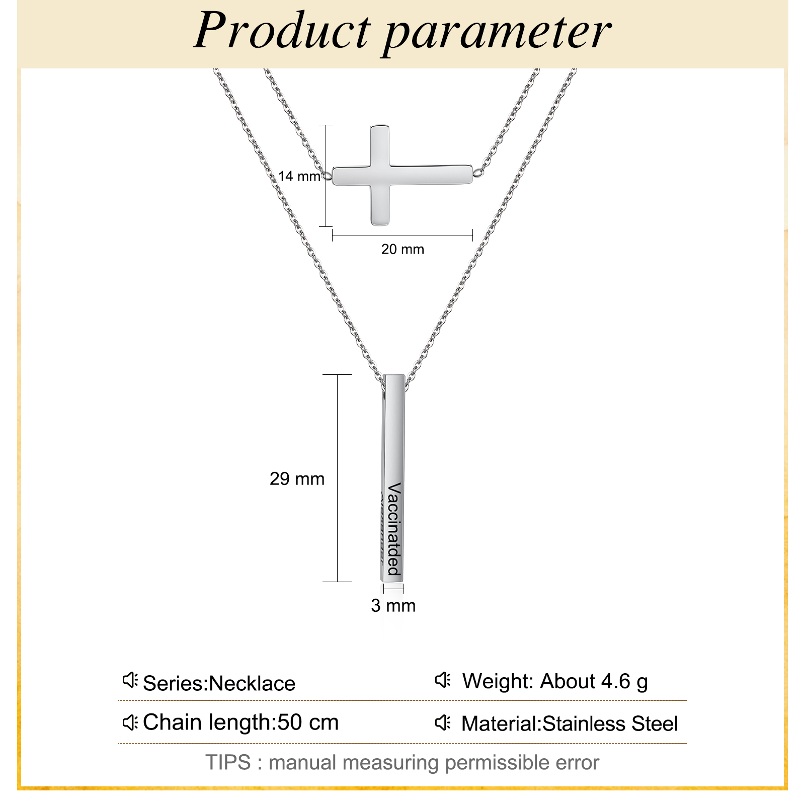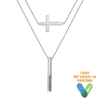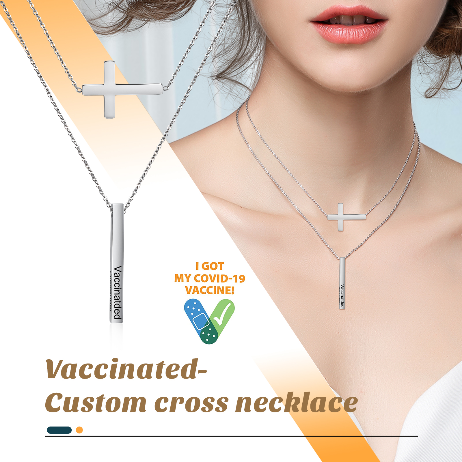 Vaccinated-Custom Cross Necklace-Personalized Cuboid Name Necklace