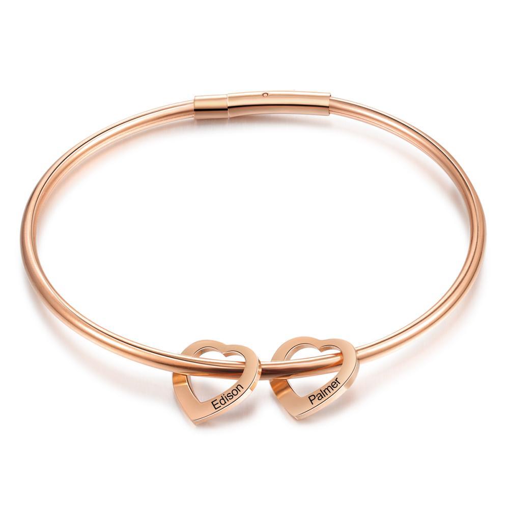 Customized Love Bracelet with 2 Heart Pendant Engraved Bangle Bracelet Gifts for Mom
