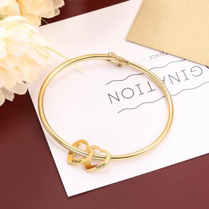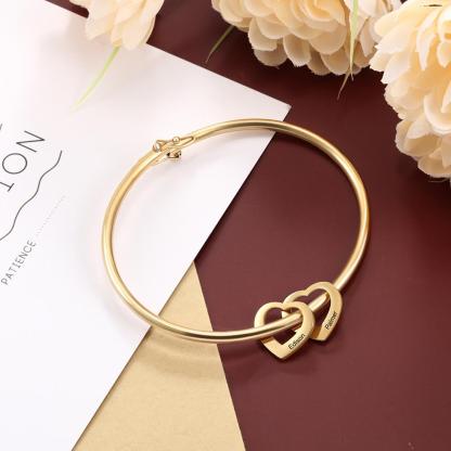 Personalized Love Bracelet with 2 Heart Pendant Engraved Bangle Bracelet Gifts for Mother