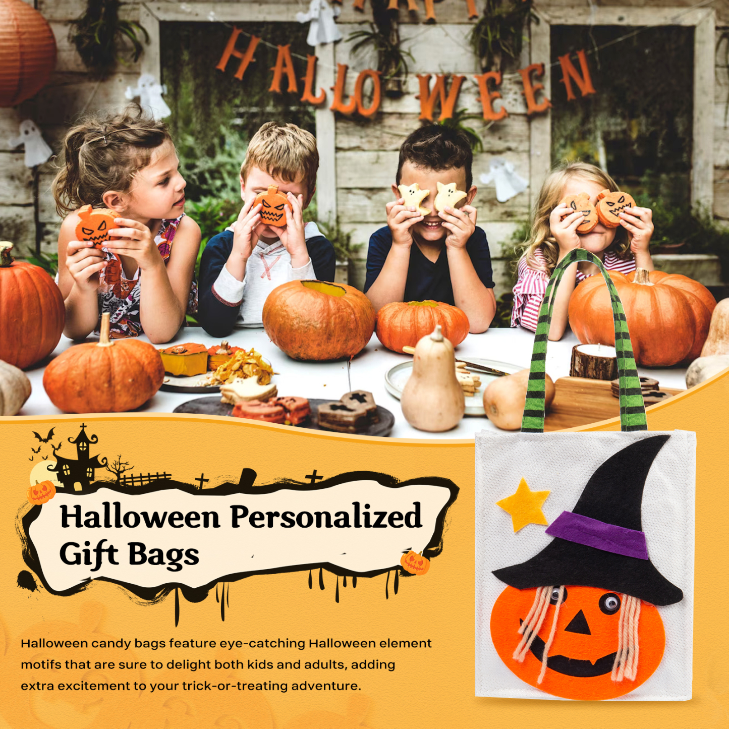 🎃Introducing our latest Halloween Candy Bag, now available with customizable names! This spooktacular candy bag is the perfect accessory for trick-or-treating and Halloween parties. Made from durable materials, it ensures your candies stay safe and secure throughout the night.