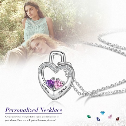 S925 Silver Love Lock Necklace Personalized Heart Necklace with Birthstone for Her