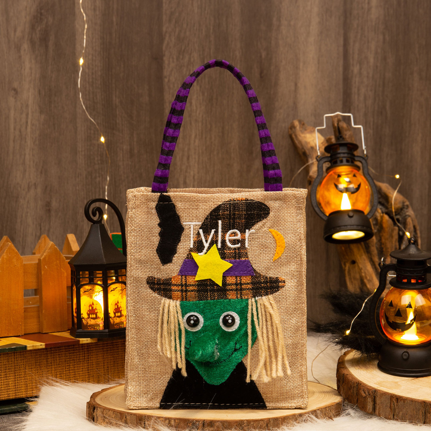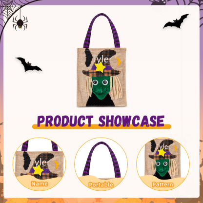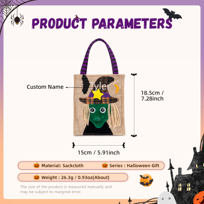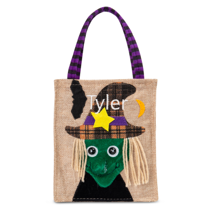 Witch-Personalized 1 Name Halloween Tote Bags Custom Kids Halloween Trick or Treat Candy Bags with Witch